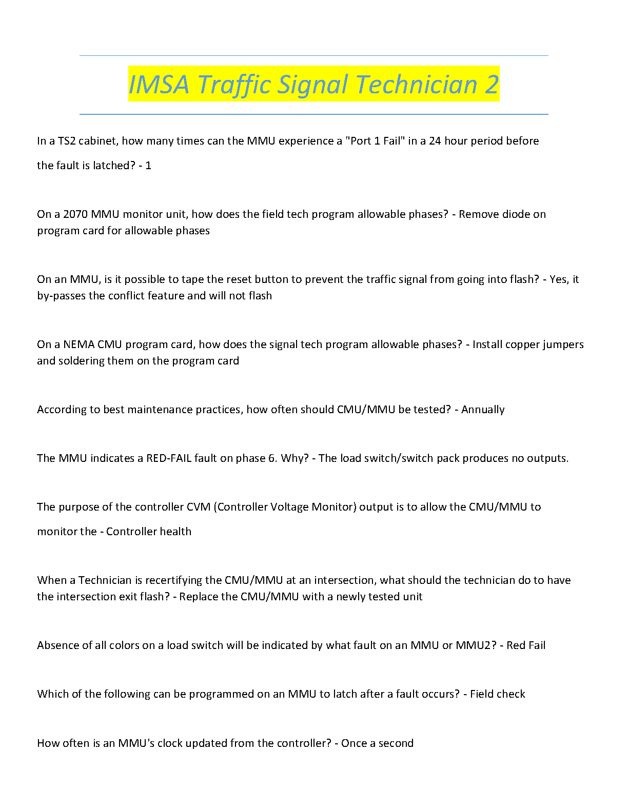 Achieve success in your IMSA Traffic Signal Technician Level 2 certification with our premier test bank, updated for the 2024/2025 exam cycle. This comprehensive resource is packed with a wide range of practice questions and verified answers, mirroring the actual exam format. Delve into essential topics such as Malfunction Management Units (MMU), Conflict Monitor Units (CMU), NEMA standards, and troubleshooting procedures. This study guide is your ultimate tool to build confidence, master complex concepts, and pass your exam on the first attempt, securing your professional certification without delay.