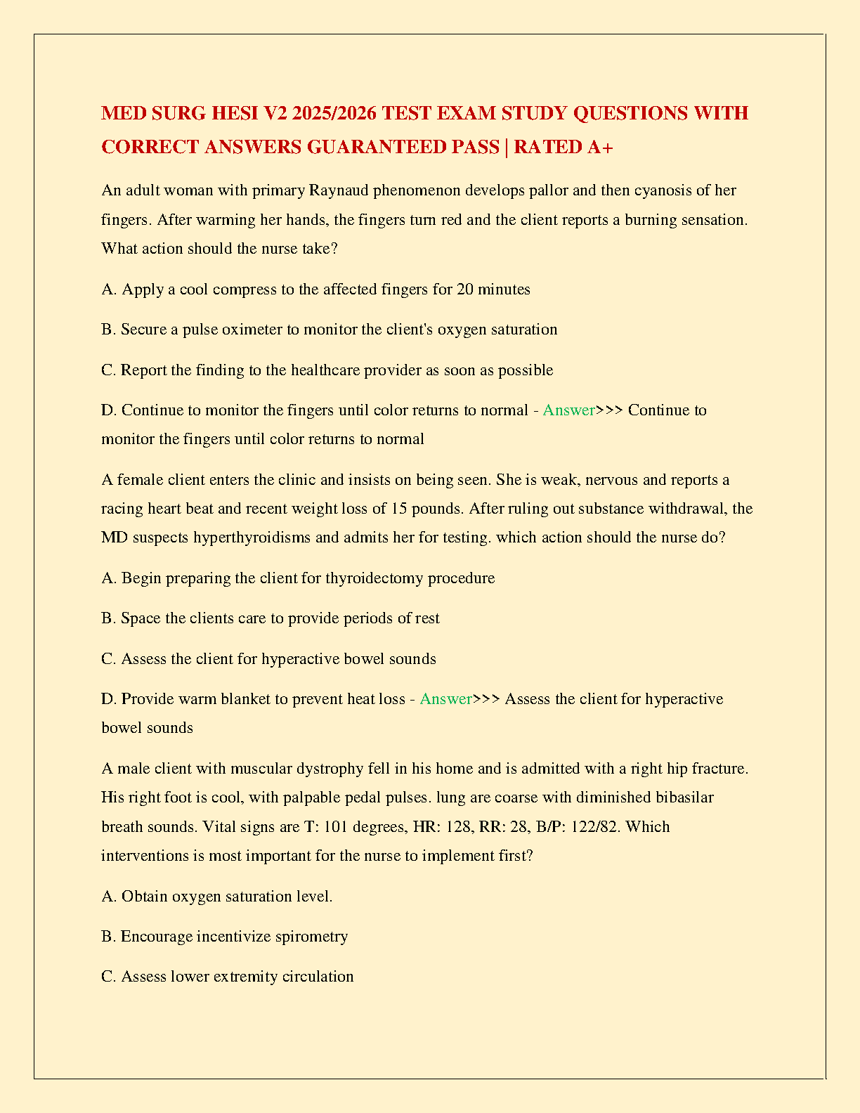 Med Surg HESI V2 Test Bank 2025/2026: Complete Exam Questions and Correct Answers for a Guaranteed A+ Pass