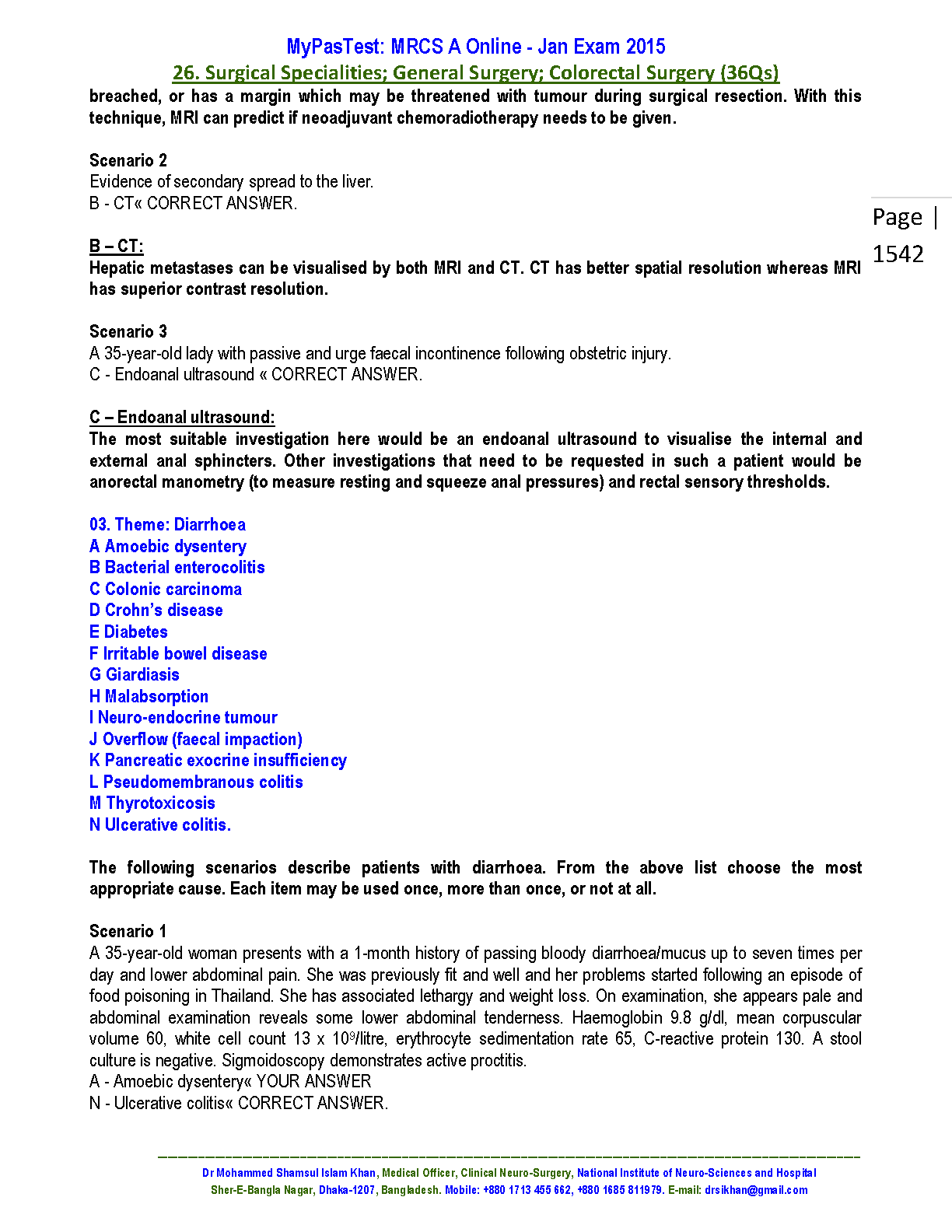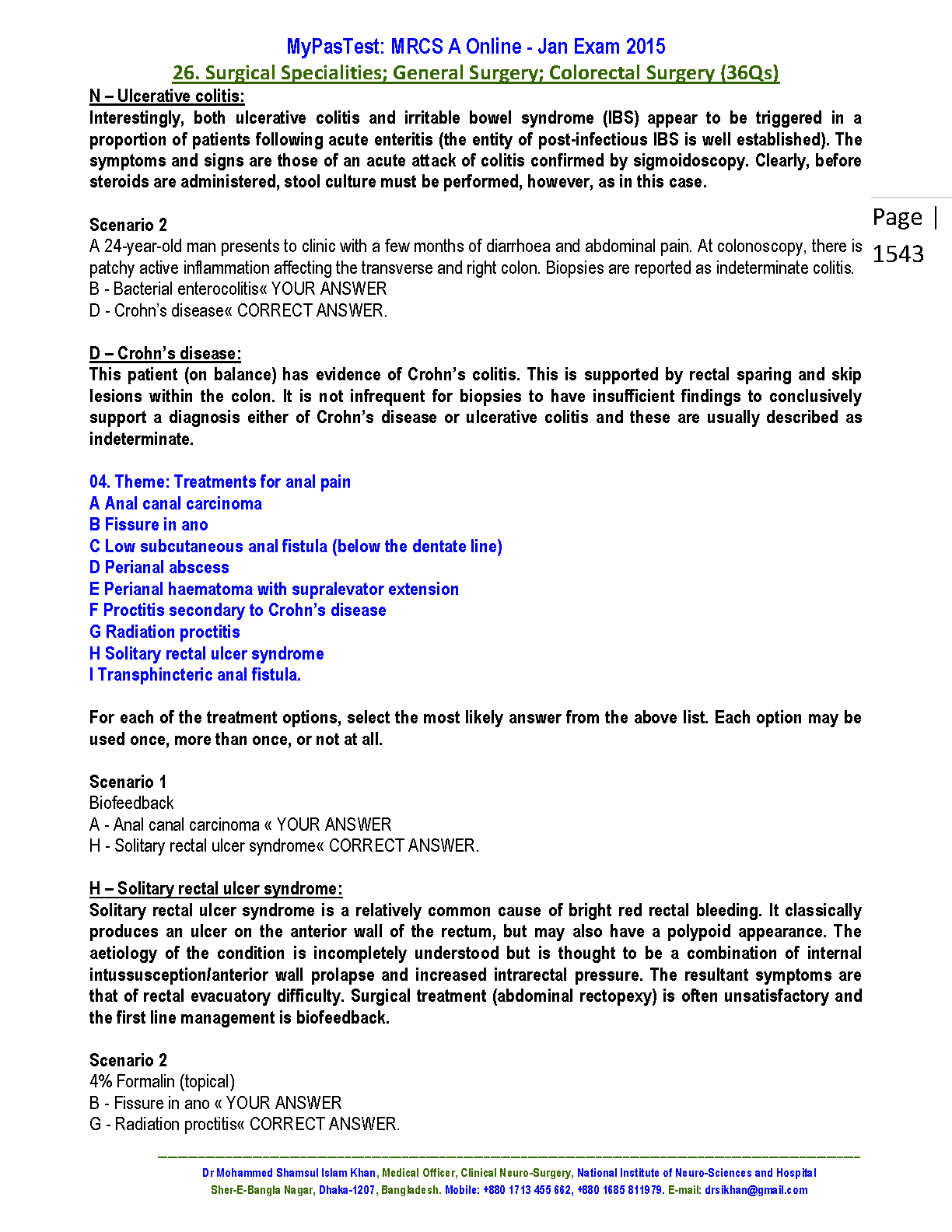 MyPasTest MRCS Part A Jan 2015 Exam Questions with Answers | General & Colorectal Surgery Test Bank