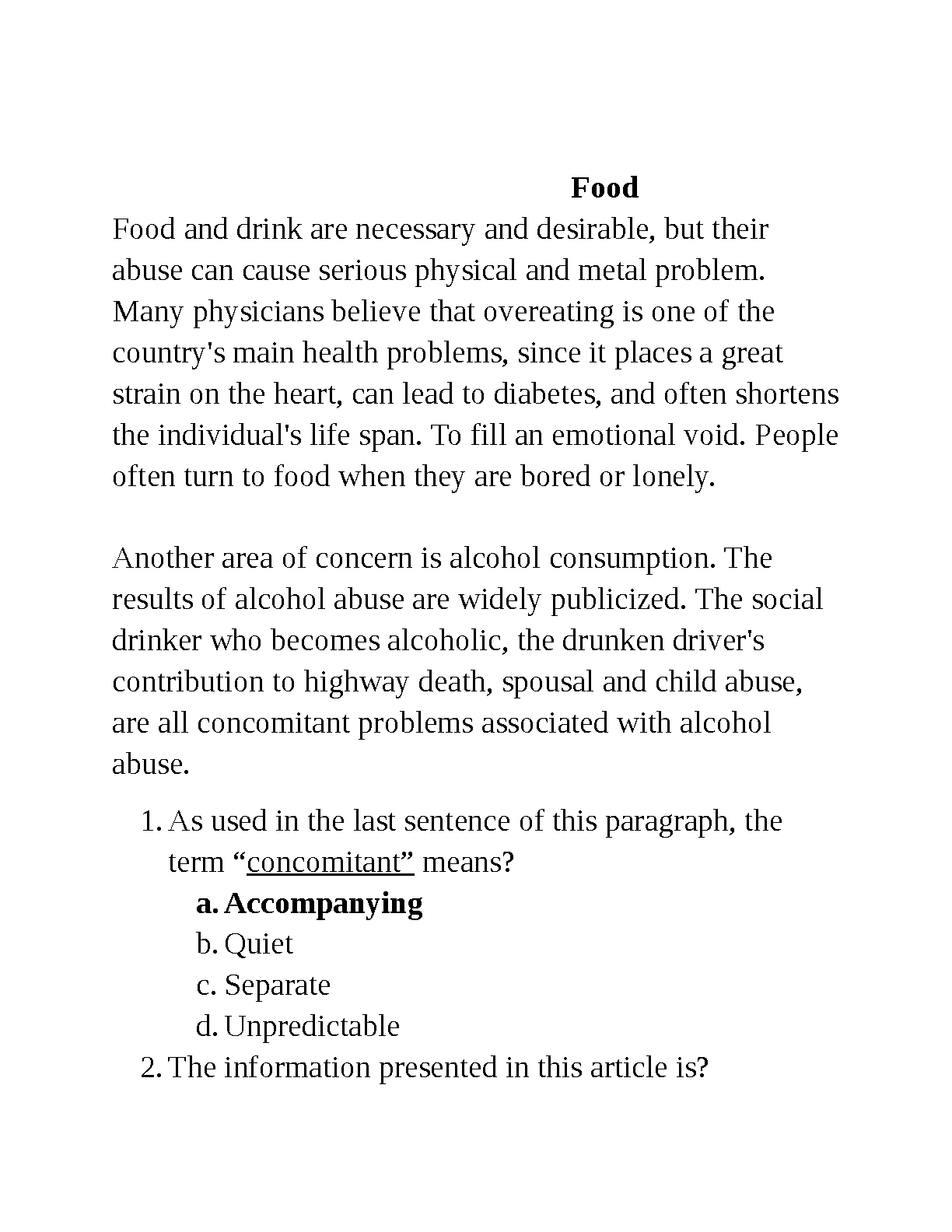 Excel in your nursing entrance exam with this HESI A2 Reading Comprehension test bank. This study resource features a detailed passage on the health consequences of food and alcohol abuse, followed by targeted questions to enhance your critical reading and vocabulary skills. Includes verified answers to help you grasp key concepts, understand complex terms like 'concomitant', and build confidence for exam day. An essential tool for any aspiring nursing student looking to achieve a high score.