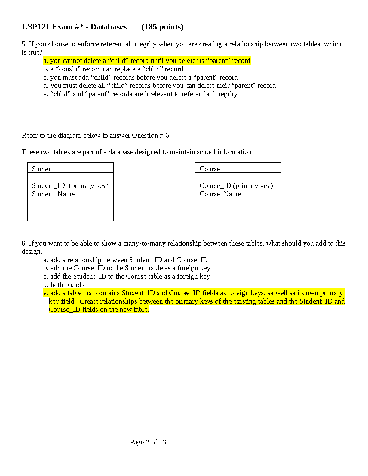 Unlock success in your LSP121 Databases course with this comprehensive study guide for Exam #2. This resource, updated for the 2025/2026 academic year, features a complete set of questions and expertly verified answers, mirroring the actual exam format. Master crucial topics such as MS-Access objects, primary and foreign keys, data types like AutoNumber, and the fundamentals of database design. This is your ultimate tool to study efficiently, grasp difficult concepts, and pass your exam with confidence on the very first attempt. Avoid resits and secure a top grade with our proven exam preparation materials!