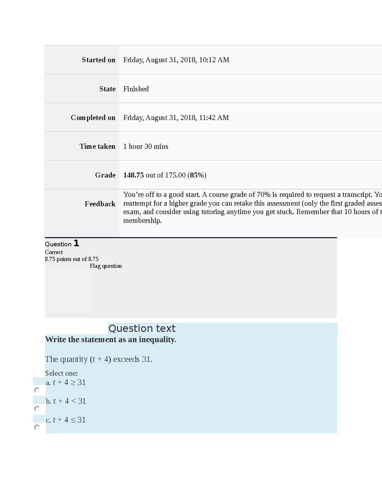 Unlock your potential and ace your algebra course with our latest 2025/2026 test bank. This digital resource features a vast collection of exam-style questions, including topics like writing statements as inequalities, to ensure you are fully prepared. Each question is designed to test your understanding and problem-solving skills, providing the perfect practice to help you pass your exams confidently and avoid any resits. Download now and take the first step towards achieving academic excellence in mathematics.