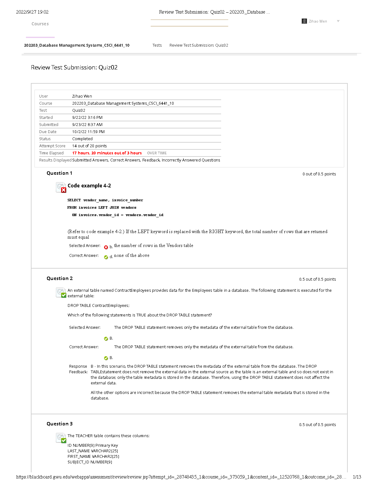 CSCI 6441 Database Management Systems Quiz 2 Test Bank - Based on Database Systems 14th Ed. by Coronel & Morris - Verified Correct Answers