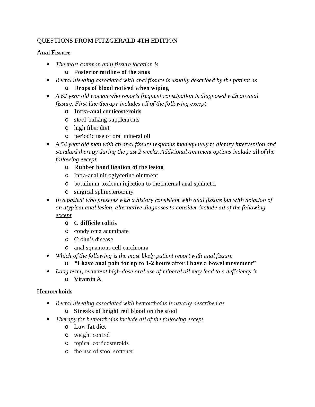 Ace your NP certification exam with our exclusive test bank for 'Nurse Practitioner Certification Examination and Practice Preparation, 4th Edition' by Margaret A. Fitzgerald. This essential study tool features a wide array of practice questions and detailed scenarios, covering key clinical topics such as anal fissures and hemorrhoids. Designed to mirror the actual exam format, this resource will sharpen your diagnostic skills and ensure you're fully prepared to pass on your first attempt. Boost your confidence and master the material with these targeted exam questions.