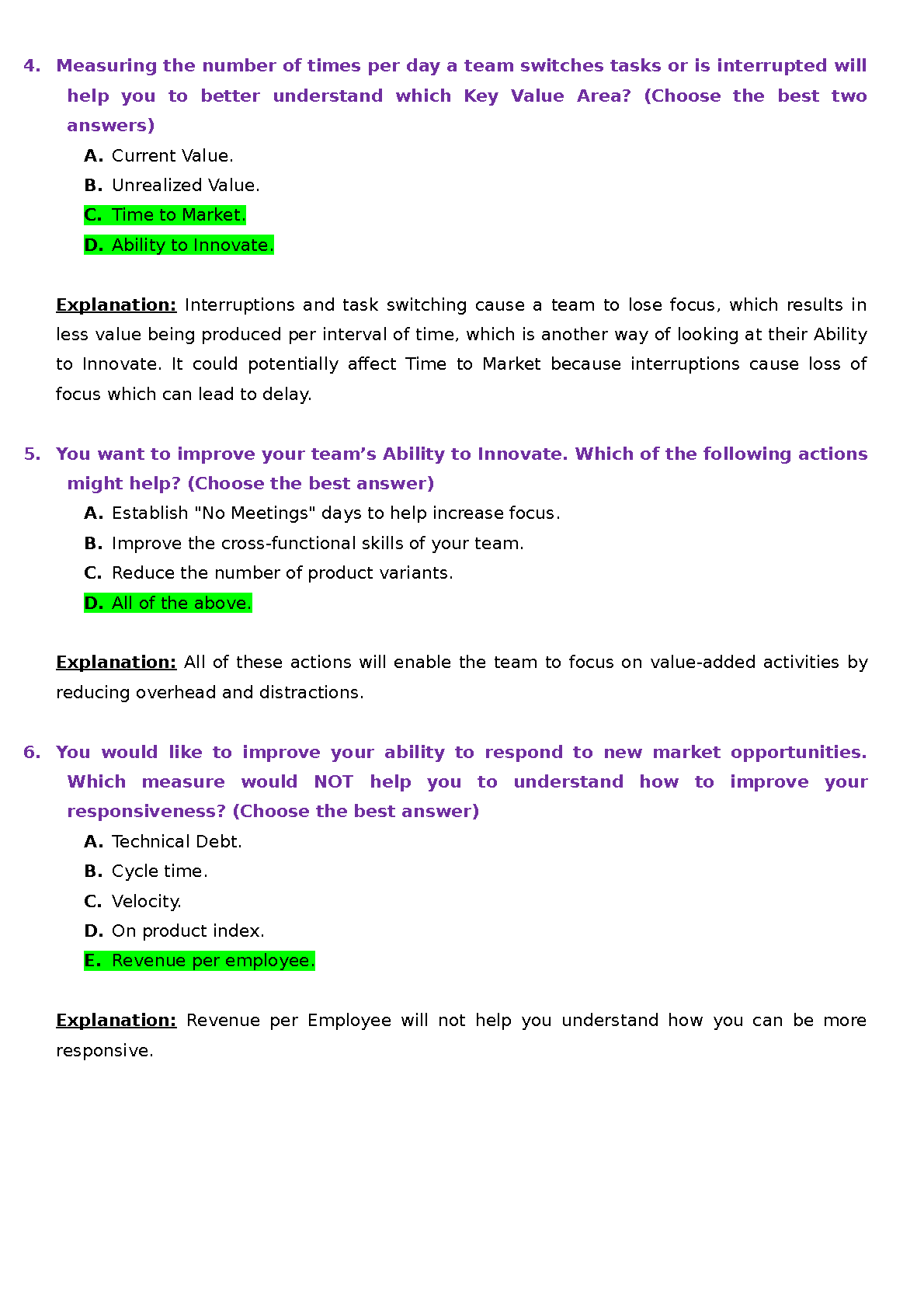 Get ready to conquer the Scrum.org Professional Agile Leadership - Evidence-Based Management (PAL-EBM) certification exam with our expertly crafted test bank. This resource provides a complete set of the latest practice questions, each with a correct answer and a detailed explanation to ensure you grasp core concepts. Master topics like measuring Current Value vs. Unrealized Value, understanding the potential market, and gauging the success of an agile transformation through customer outcomes. This exam prep tool is your key to building confidence and achieving your PAL-EBM certification on the first try.