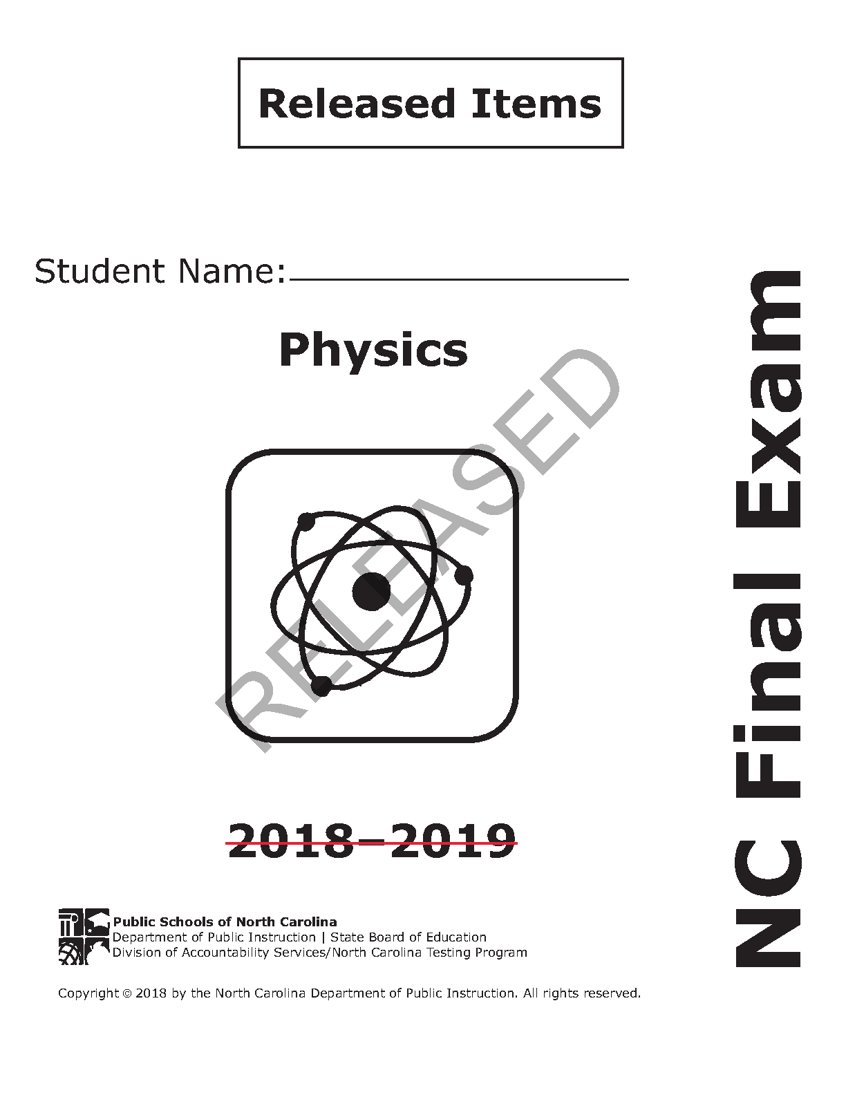 NC Physics Final Exam Prep 2025/2026: Master the Test with the Official 2019 Released Items by the North Carolina Dept. of Public Instruction to Ace Your Exam