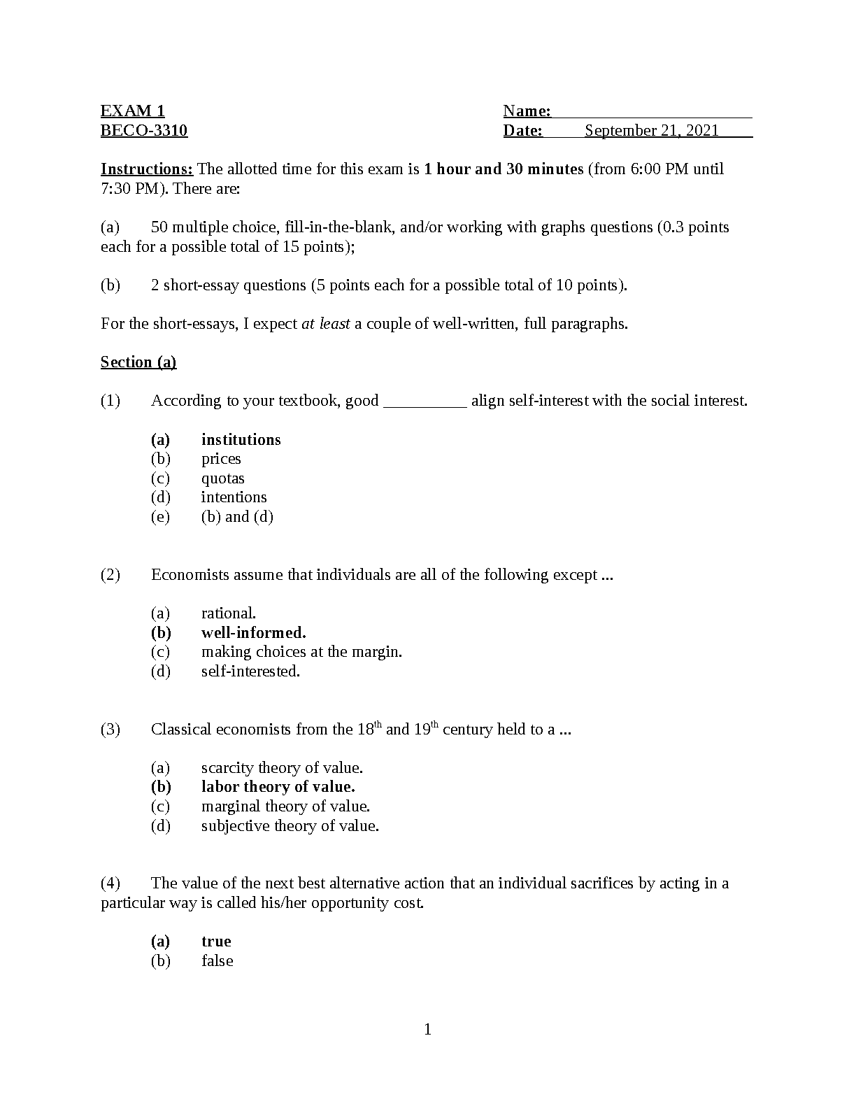 Unlock academic success in your BECO-3310 Applied Business Economics course with this comprehensive test bank for the 5th Edition of 'Modern Principles of Economics' by Tyler Cowen and Alex Tabarrok. This resource contains the complete Exam 1, featuring a detailed set of multiple-choice and short-essay questions, all complete with verified answers. Deepen your understanding of core economic concepts such as opportunity cost, classical theories of value, and the alignment of self-interest with social good. This essential study tool is perfectly crafted to familiarize you with the exam structure, provide critical practice, and help you ace your test on the first attempt.