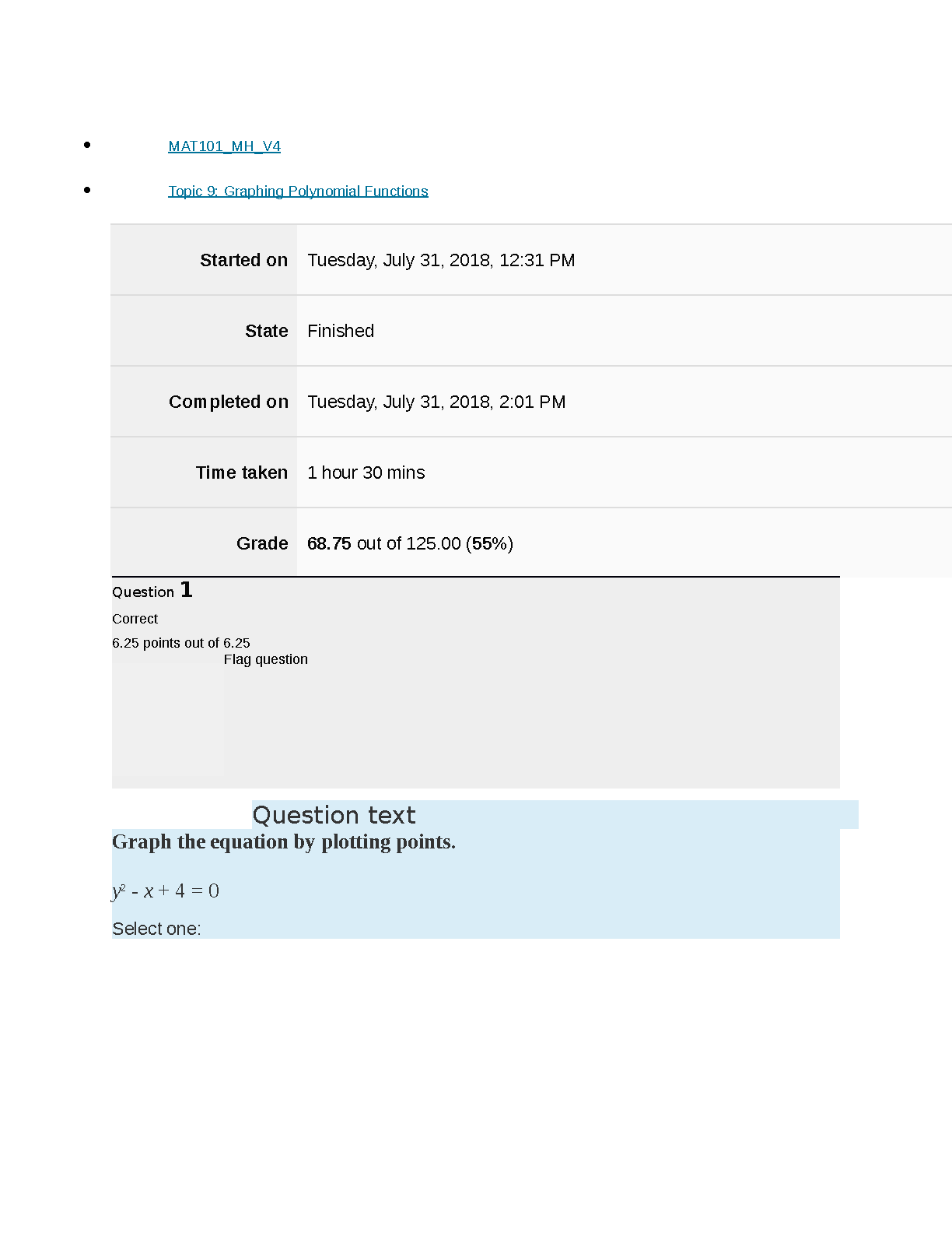 Master Topic 9: Graphing Polynomial Functions in your MAT101 College Algebra course with this comprehensive test bank for the 2025/2026 academic year. Aligned with the popular 'College Algebra, 3rd Edition' by Miller and Gerken, this resource provides targeted practice questions and verified answers to ensure you're fully prepared for your exams. The file covers key concepts seen in the MAT101_MH_V4 curriculum, such as graphing equations by plotting points. Stop worrying about resits—use this study guide to master the material and pass on your first attempt. Download now for immediate access to exam-winning content!