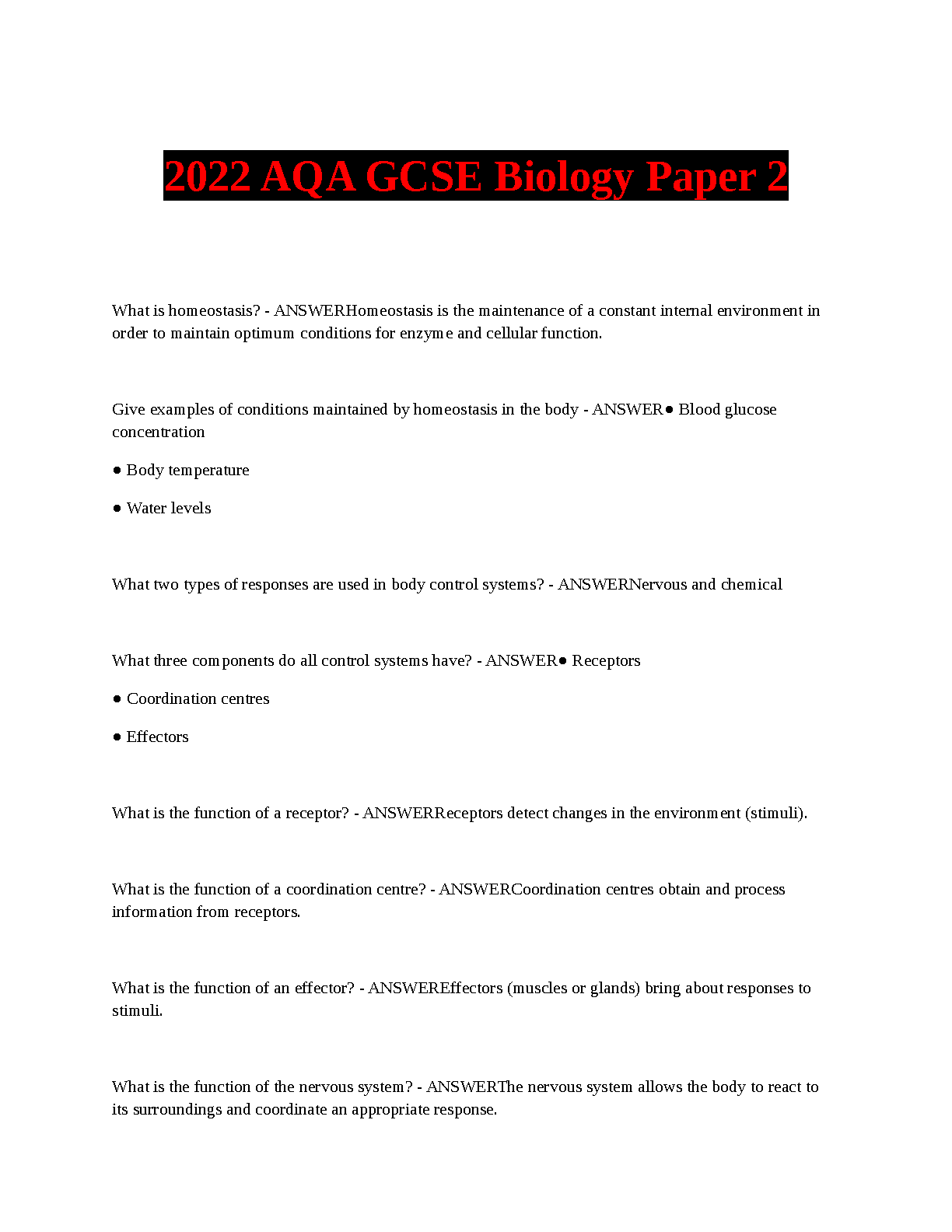AQA GCSE Biology Paper 2 (2022) | Verified Questions and Answers Mark Scheme