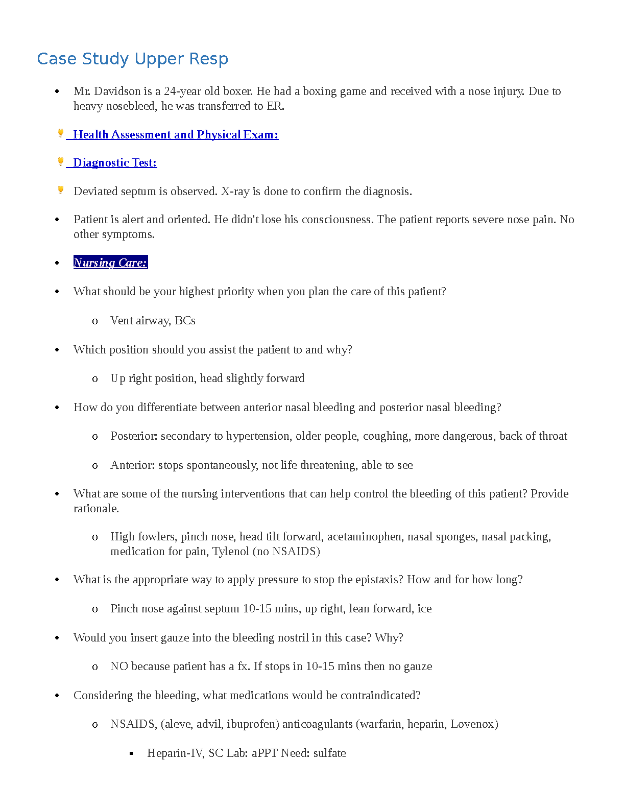 Mastering Upper Respiratory Nursing: Epistaxis & Deviated Septum Case Study with Q&A | Latest 2025/2026 Guide to Ace Your Exams