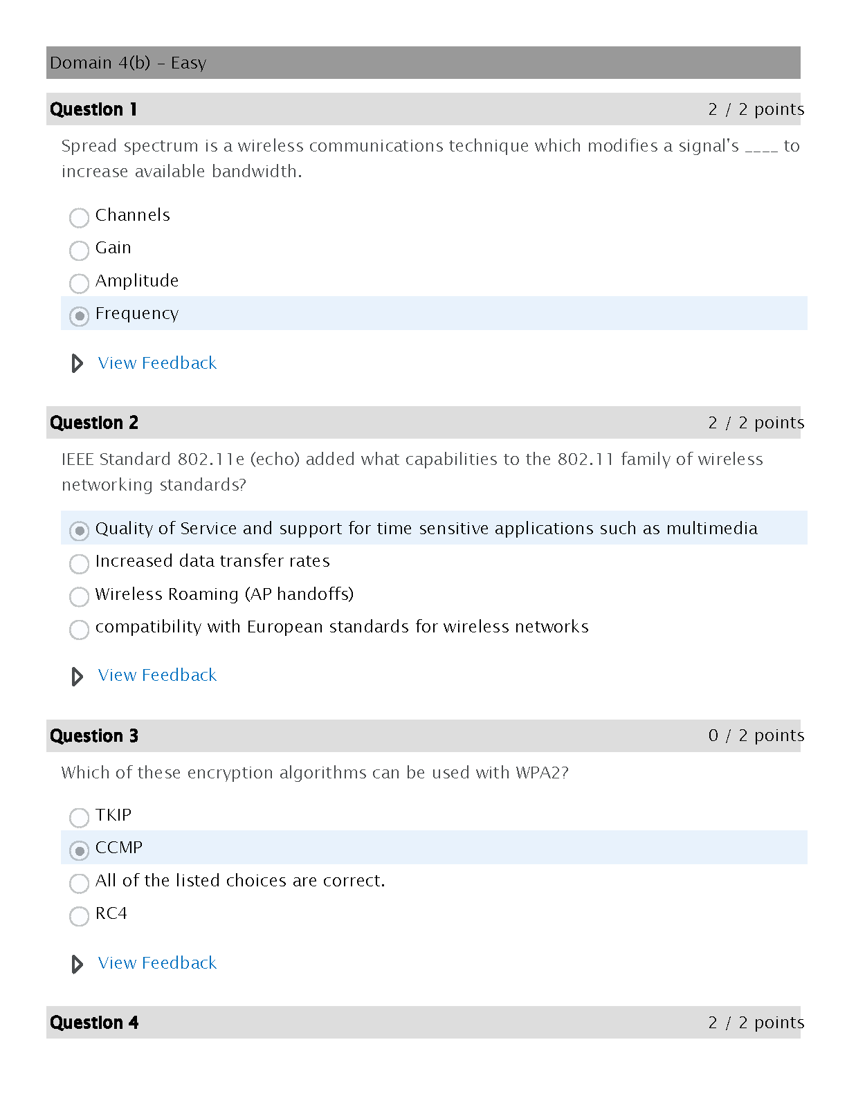 Get ready to ace your CompTIA Security+ (SY0-701) certification with our comprehensive test bank, fully updated for the 2025/2026 academic year. This resource provides a deep dive into crucial topics from Domain 4, focusing on wireless security. Master concepts like spread spectrum technology, IEEE 802.11 standards including QoS enhancements with 802.11e, and robust encryption protocols like WPA2 and CCMP. Each question comes with a verified answer, mirroring the format of the actual exam. This test bank is your ultimate tool to build confidence, identify knowledge gaps, and pass the Security+ exam on your very first try, avoiding costly resits.