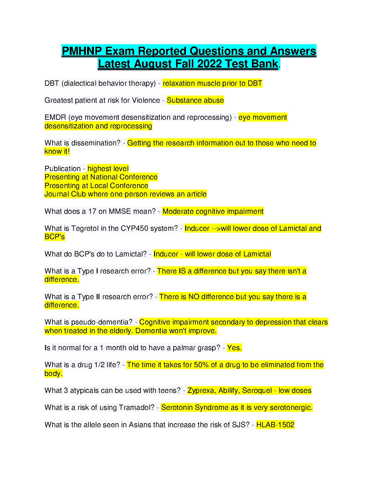 PMHNP Exam Reported Questions and Answers Latest August Fall 2022/2023 Test Bank. DOWNLOAD on www.hackedexams.com INSTANTLY.
