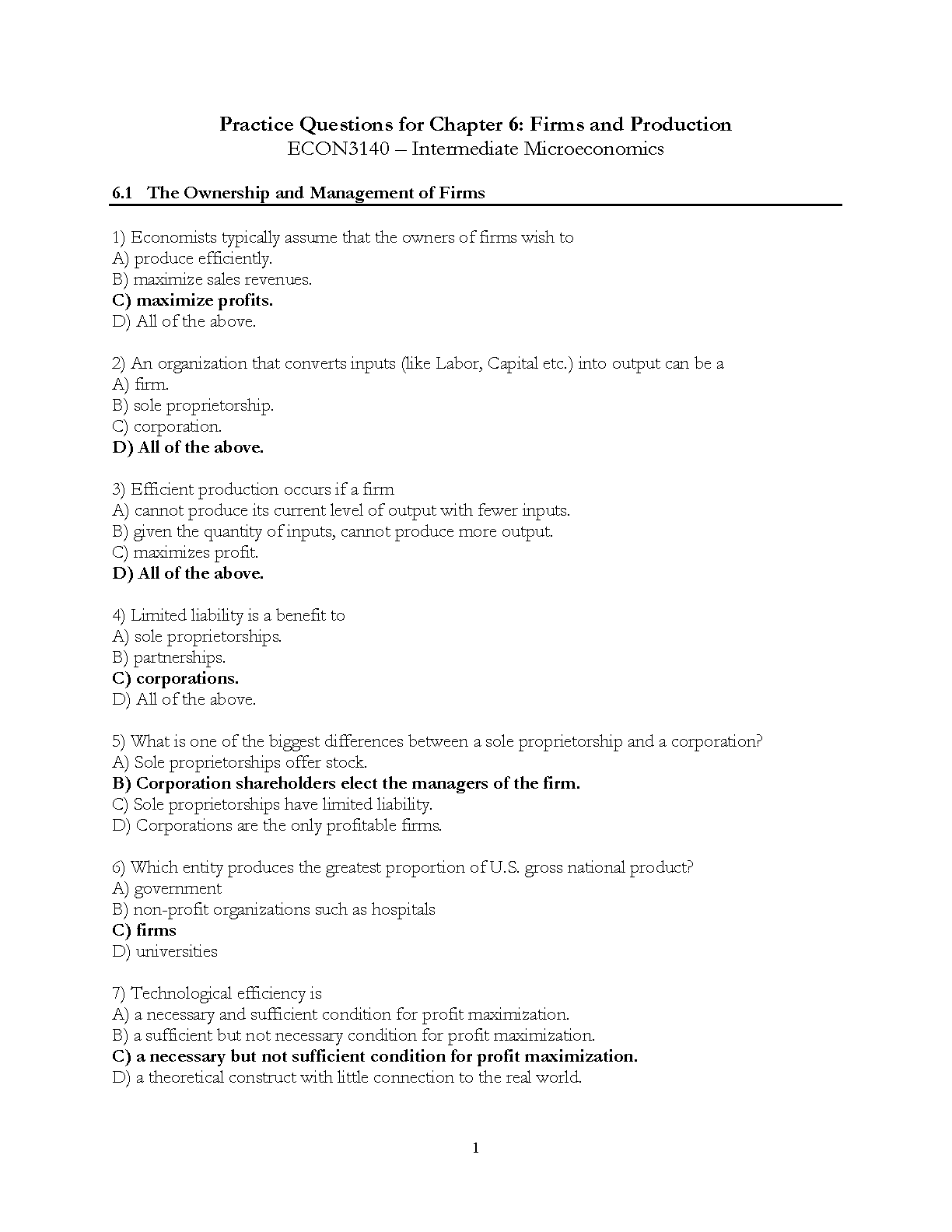 Unlock exam success in your ECON3140 Intermediate Microeconomics course with the official Test Bank for Chapter 6: Firms and Production from 'Microeconomics, 9th Edition' by Robert S. Pindyck and Daniel L. Rubinfeld. This essential study guide features a complete collection of practice questions with verified answers, covering key topics like firm ownership, management, and production efficiency. Prepare effectively, test your understanding, and master the material needed to excel on your exams.
