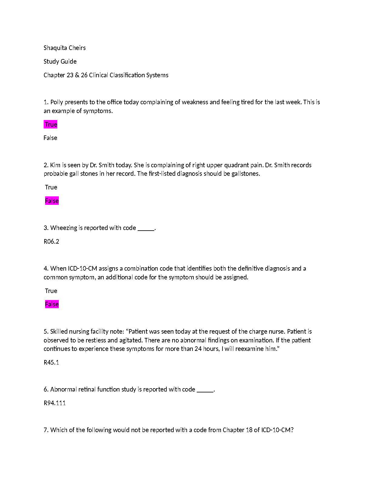 Master Clinical Classification Systems with this comprehensive Test Bank for Chapters 23 and 26 of 'Essentials of Health Information Management: Principles and Practices, 4th Edition' by Green and Bowie. This essential study tool provides a full collection of exam-style questions and verified answers, covering key topics such as ICD-10-CM coding, assigning codes for symptoms vs. definitive diagnoses, and the correct application of combination codes. Ideal for students in health information management programs looking to excel in their exams and develop proficiency in medical coding.