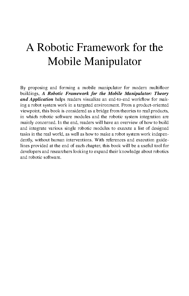 A Robotic Framework for the Mobile Manipulator, 1st Edition by Nguyen Van Toan and Phan Bui Khoi - 2025/2026 Exam Success Guide
