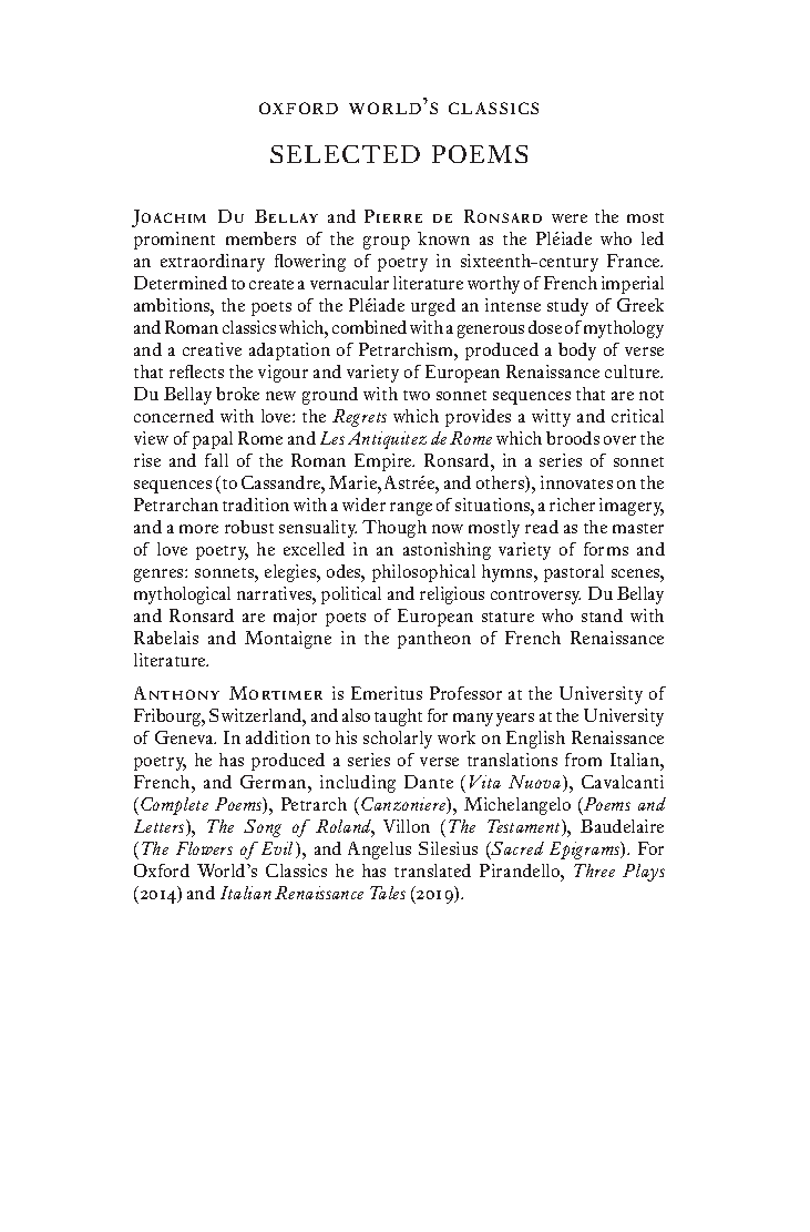 Unlock the masterpieces of the French Renaissance with this essential 2025/2026 guide to 'Selected Poems' by Joachim Du Bellay and Pierre de Ronsard. This Oxford World's Classics edition, featuring a brilliant new translation by Anthony Mortimer, is the ultimate resource for students aiming to ace their literature exams on the first attempt. Dive deep into the seminal works of the Pléiade poets, exploring themes of love, exile, and the beauty of the French language. Our expertly curated notes and insights will help you master the material, write compelling analyses, and avoid costly resits. Get the A-grade you deserve with this indispensable study companion.