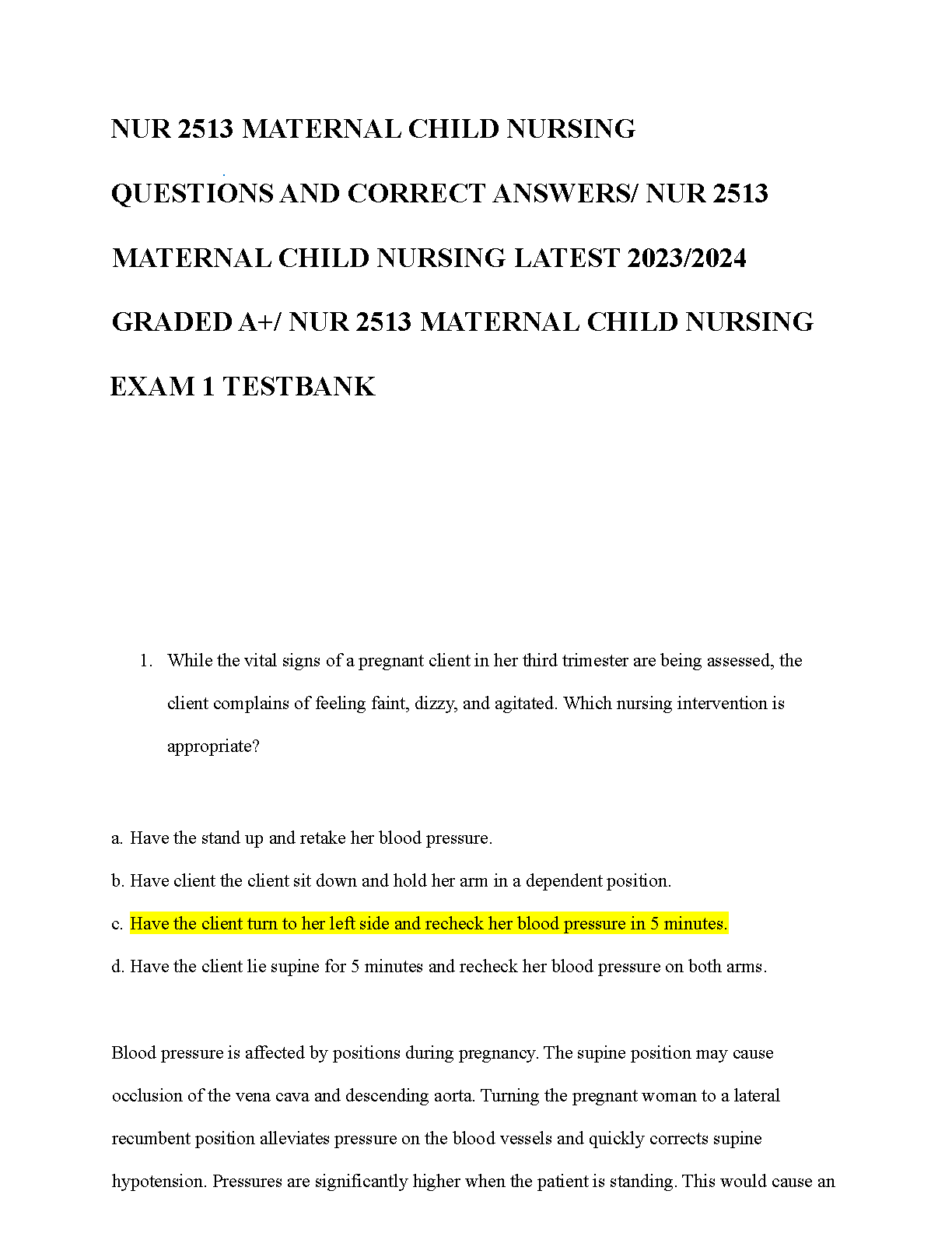 Ace your NUR 2513 Maternal Child Nursing course with this comprehensive Exam 1 Test Bank, based on the 7th Edition of 'Maternal Child Nursing Care' by Perry, Hockenberry, Lowdermilk, and Wilson. This essential study guide features a complete collection of exam-style questions, each with a verified correct answer and detailed rationale to deepen your understanding. Designed to help you master key concepts and prepare effectively, this resource is your key to achieving an A+ grade. Download now to boost your confidence and excel in your nursing studies.