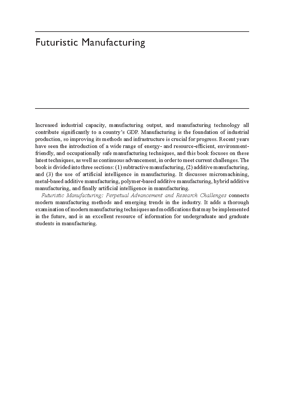 Unlock success in your manufacturing engineering courses with the definitive 2025/2026 guide to 'Futuristic Manufacturing'. This comprehensive resource, edited by experts Mithilesh K. Dikshit, Vimal Kumar Pathak, Asit Baran Puri, and J. Paulo Davim, delves into the most current advancements and research challenges in the field. Explore cutting-edge topics like advanced composite manufacturing, 3D printing, and tribological coatings, all presented in a clear format designed to help you pass your exams on the first attempt. Avoid resits and master complex concepts with this essential study companion, your key to academic excellence in science, technology, and management.