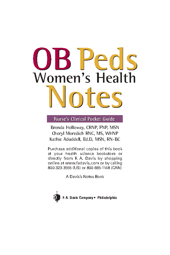 Master OB/Peds & Women's Health: Nurse's Pocket Guide, 4th Edition by Brenda S. Holloway, Cheryl Moredich & Kathie Aduddell | 2025/2026 Exam Success Guide