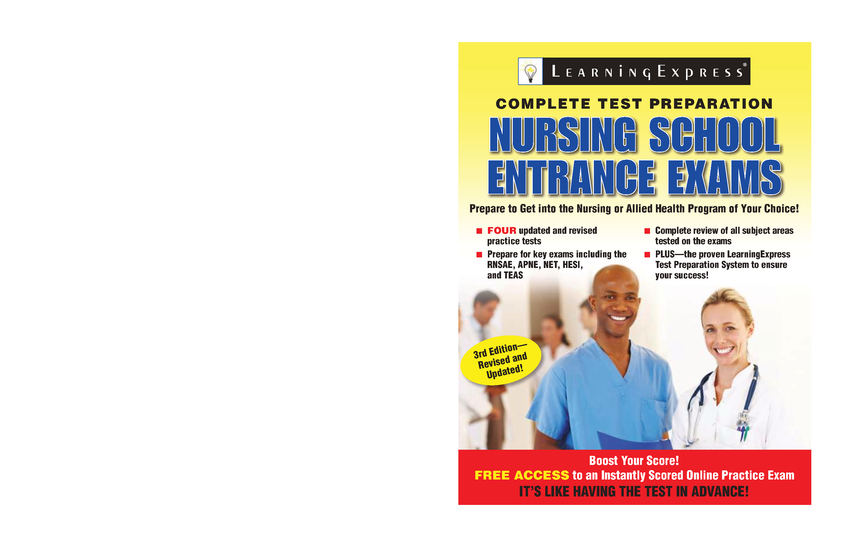 Ace your nursing school admission tests with the complete test bank for 'Nursing School Entrance Exams, 3rd Edition' by LearningExpress. This comprehensive resource is expertly designed to help you succeed on the first try. It provides a thorough review of all essential subject areas and includes four fully updated and revised practice tests. Prepare effectively for key exams like the HESI, TEAS, NET, APNE, and RNSAE. Gain a competitive edge with the proven LearningExpress test preparation system and boost your score with instant access to an online practice exam. Secure your spot in your dream nursing or allied health program with this ultimate study guide.