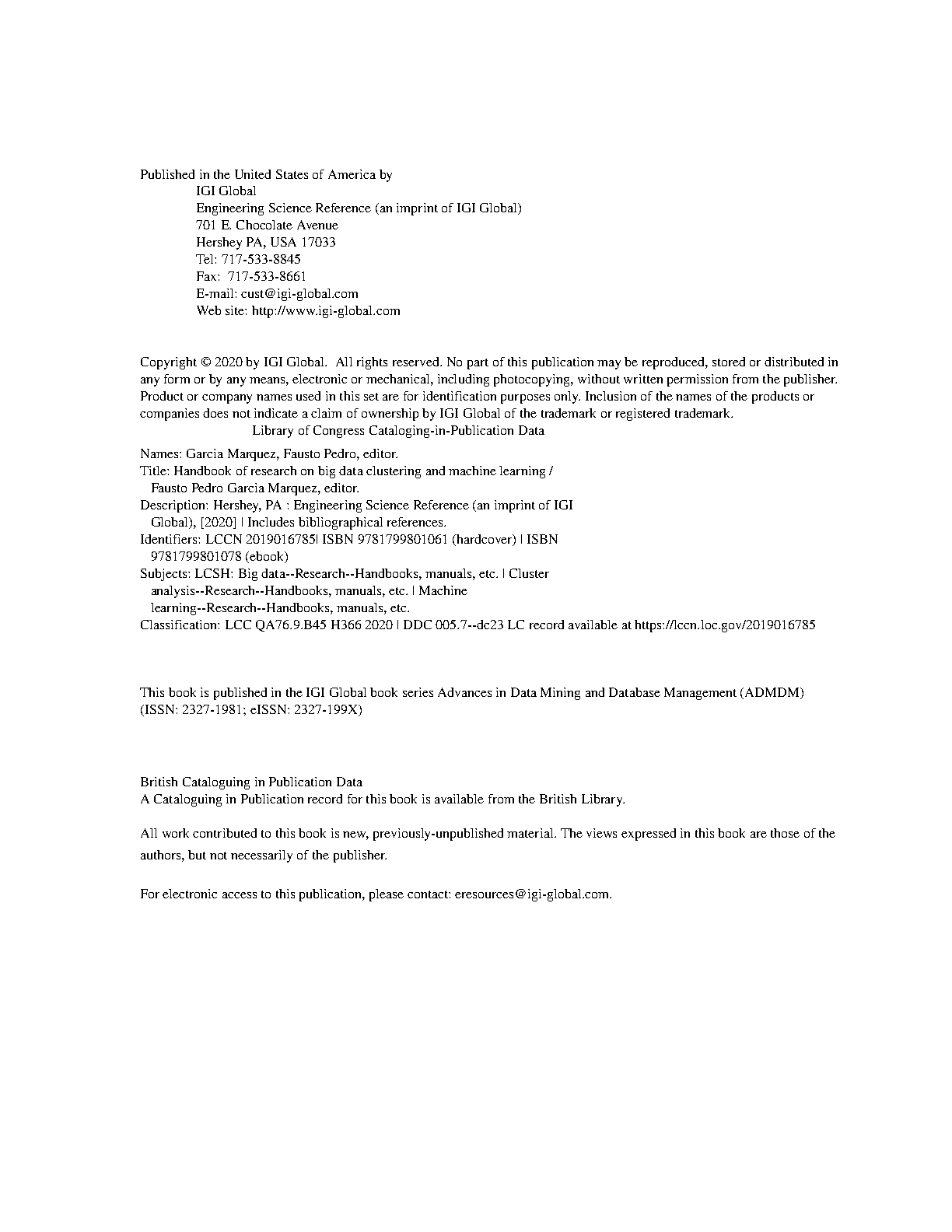 Test Bank for Handbook of Research on Big Data Clustering and Machine Learning, 1st Edition by Fausto Pedro García Márquez