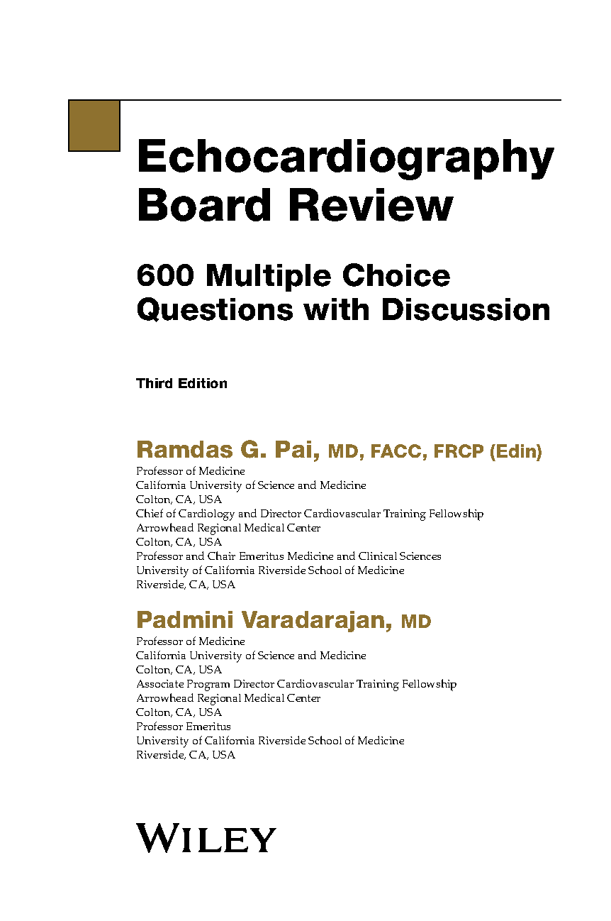 Test Bank for Echocardiography Board Review, 3rd Edition by Ramdas G. Pai and Padmini Varadarajan