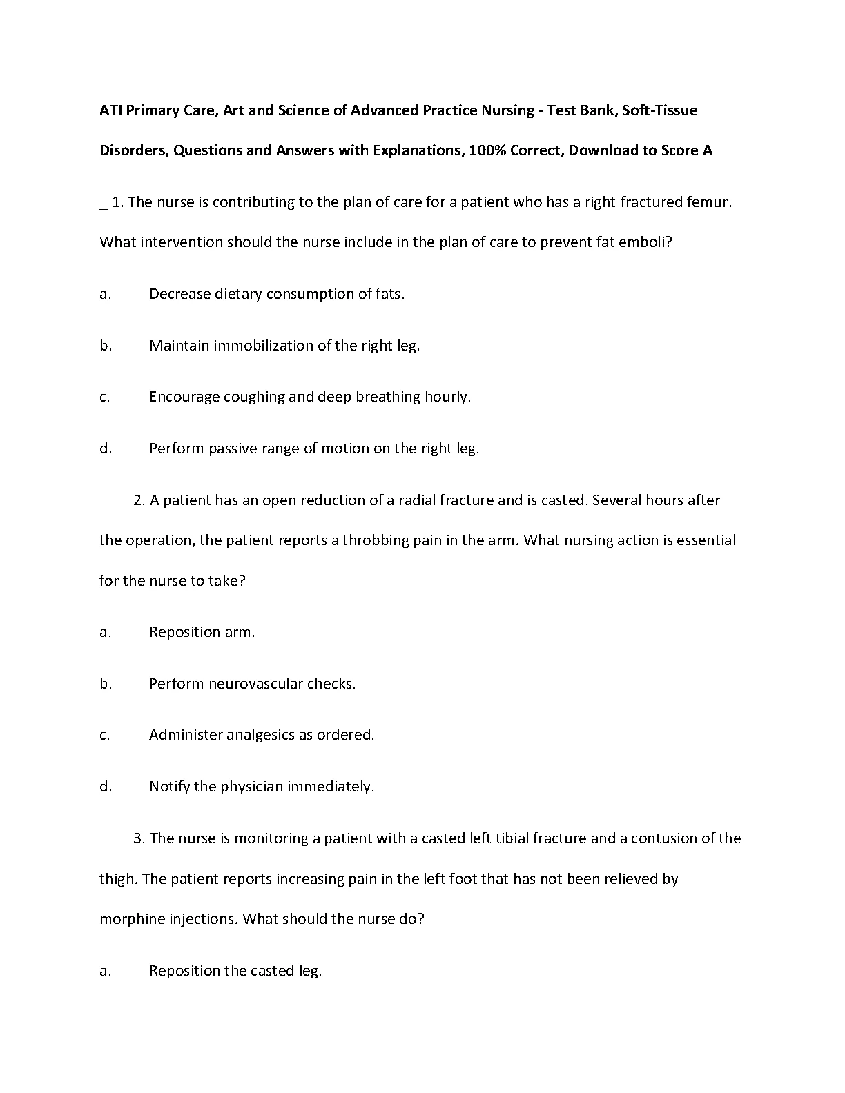 ATI Primary Care, Art and Science of Advanced Practice Nursing - Test Bank, Soft-Tissue Disorders, Questions and Answers with Explanations, 100% Correct