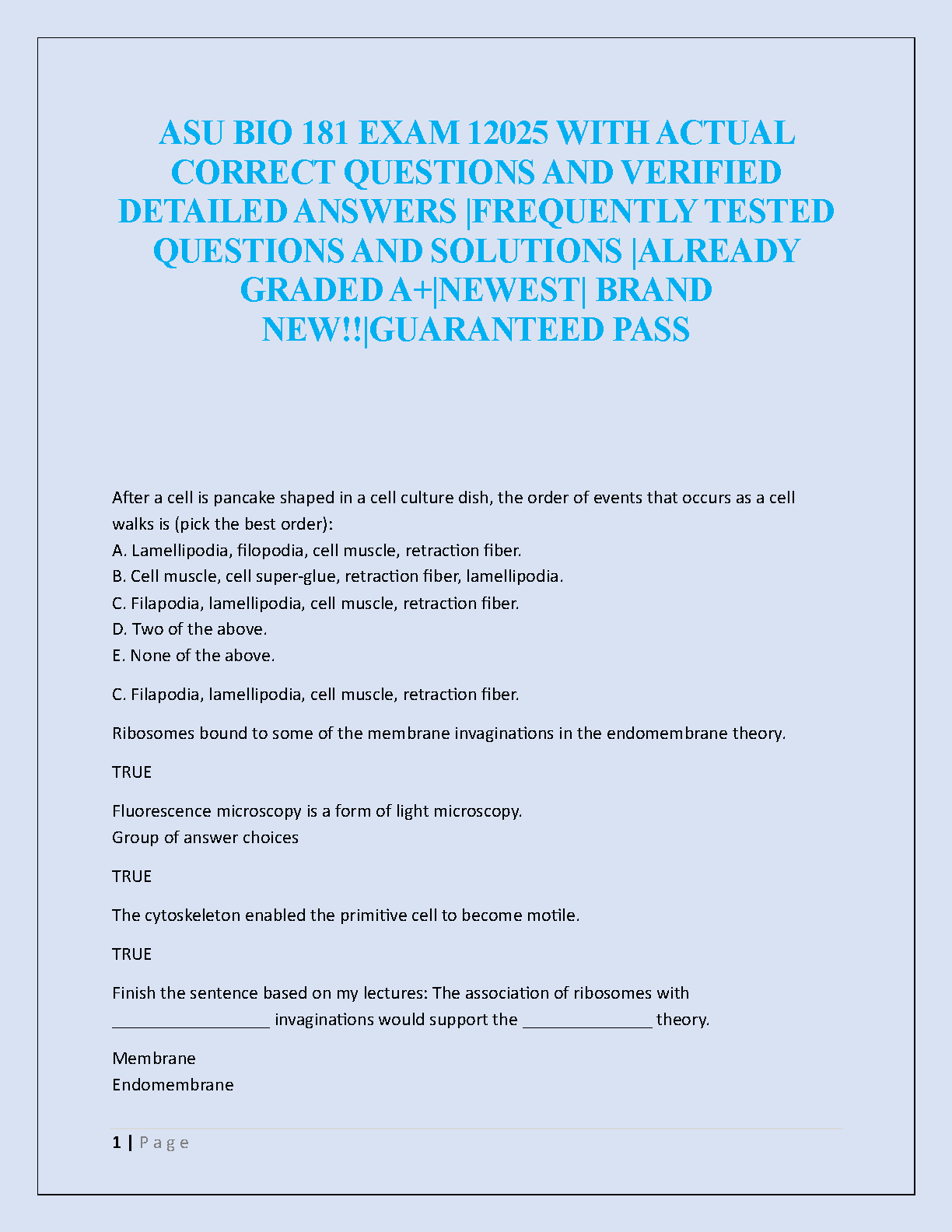 Unlock success in your ASU BIO 181 General Biology I course with this comprehensive test bank. This guide features a collection of actual, frequently tested exam questions complete with verified, detailed answers. Designed to help you master key concepts and prepare effectively, this resource is your key to achieving an A+ grade. Stop struggling and start studying smart with our guaranteed-to-pass study materials.