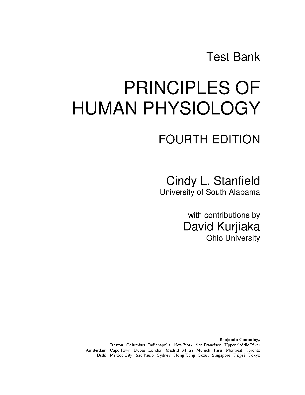Test Bank for Principles of Human Physiology, 4th Edition by Cindy L. Stanfield, David Kurjiaka