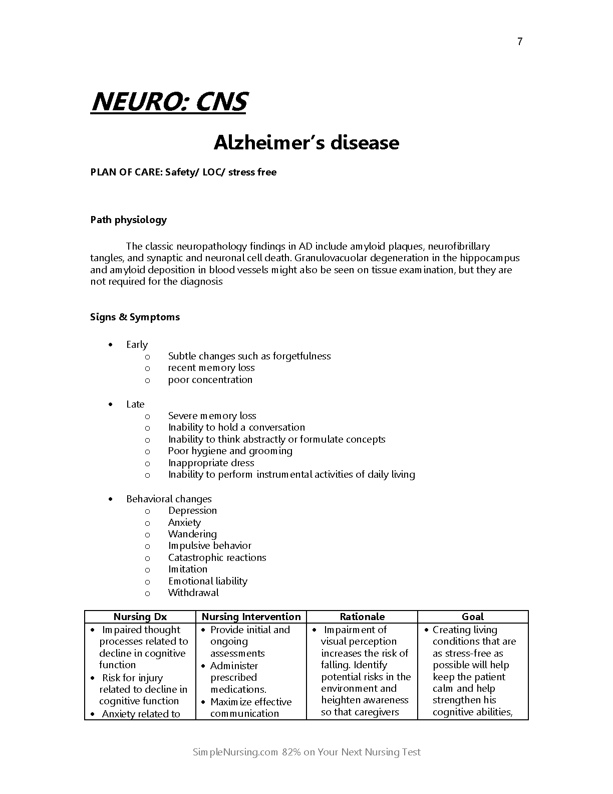 Neuro CNS: Alzheimer's Disease Nursing Care Plan | Updated 2025/2026 Study Guide to Ace Your Nursing Exams and Avoid Resits