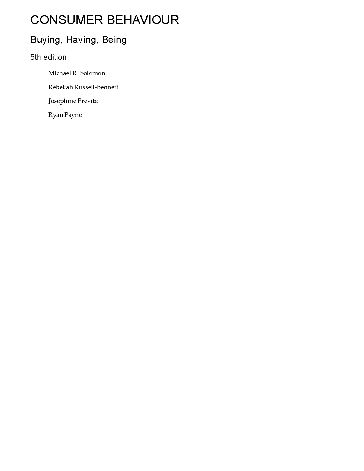 Test Bank for Consumer Behaviour: Buying, Having, Being, 5th Edition by Michael R. Solomon, Rebekah Russell-Bennett, Josephine Previte, and Ryan Payne