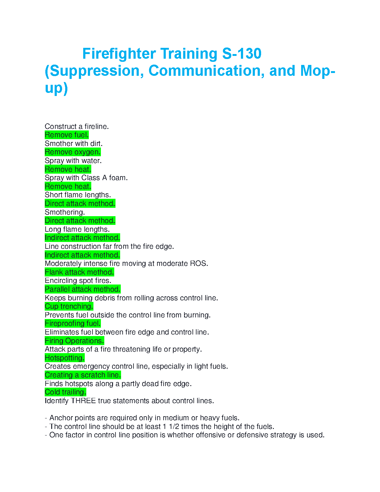 NWCG S-130 Firefighter Training: Suppression & Mop-up Exam Elaboration | 2025/2026 Study Guide to Ace Your Certification