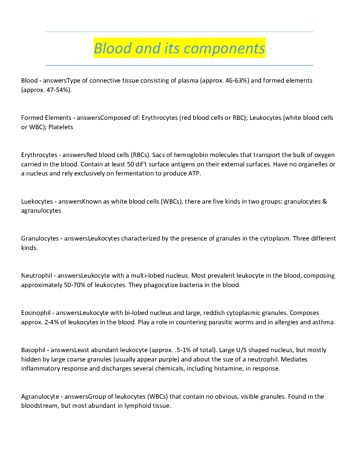Master the complexities of blood composition with our latest 2025/2026 exam elaboration for Chapter 17 of 'Human Anatomy & Physiology,' 12th Edition by Elaine N. Marieb and Katja Hoehn. This in-depth resource provides clear, concise answers and explanations on all key topics, including the functions of plasma, the roles of formed elements like erythrocytes (RBCs) and platelets, and a detailed breakdown of all leukocyte (WBC) types—from granulocytes like neutrophils and eosinophils to agranulocytes. Designed specifically to help you excel in your exams, this study guide simplifies difficult concepts, ensuring you grasp the material thoroughly. Download now to secure a top grade and pass on your first attempt, avoiding costly and stressful resits!