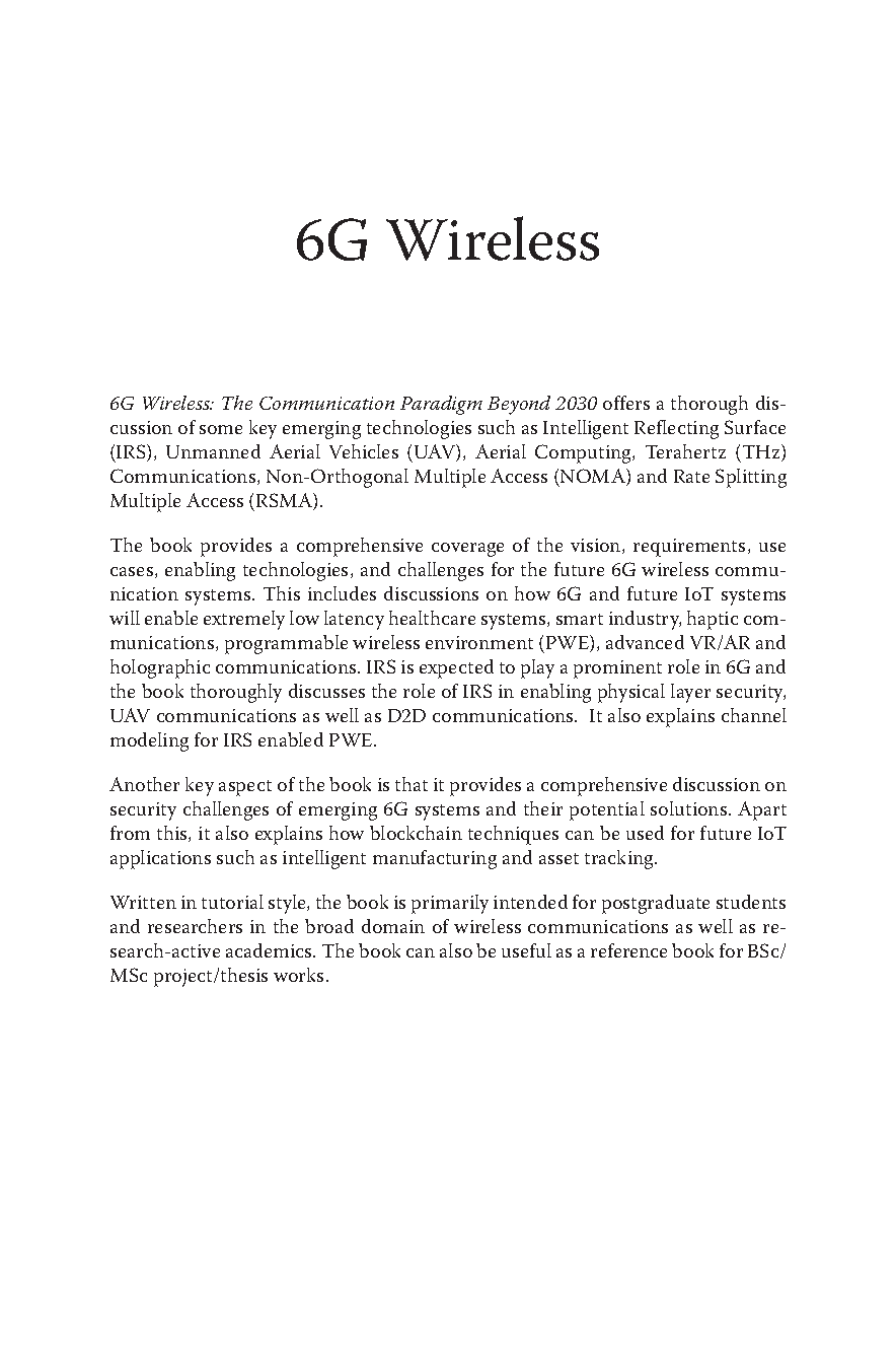 Unlock the future of communication and guarantee your academic success with this essential guide to 6G Wireless technology, updated for the 2025/2026 academic year. Edited by leading experts Faisal Tariq, Muhammad Khandaker, and Imran Shafique Ansari, this comprehensive 1st Edition resource is designed to help you pass your exams on the first attempt. Dive deep into the core concepts shaping the communication paradigm beyond 2030, from AI/ML integration and THz communications to reconfigurable intelligent surfaces and quantum networking. Explore the architecture, protocols, and real-world applications of 6G in smart cities, e-health, and autonomous systems. This is the ultimate study companion for mastering next-generation wireless technology and avoiding costly resits.