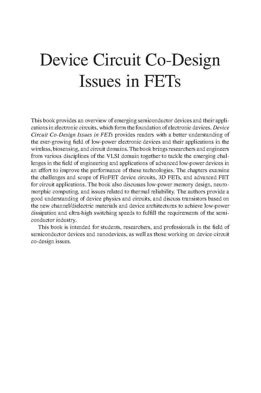 Master FETs & Circuit Design: 2025/2026 Exam Prep for 'Device Circuit Co-Design Issues in FETs' 1st Ed. by Shubham Tayal, Billel Smaani, et al. - Ace Your Exams, Avoid Resits!