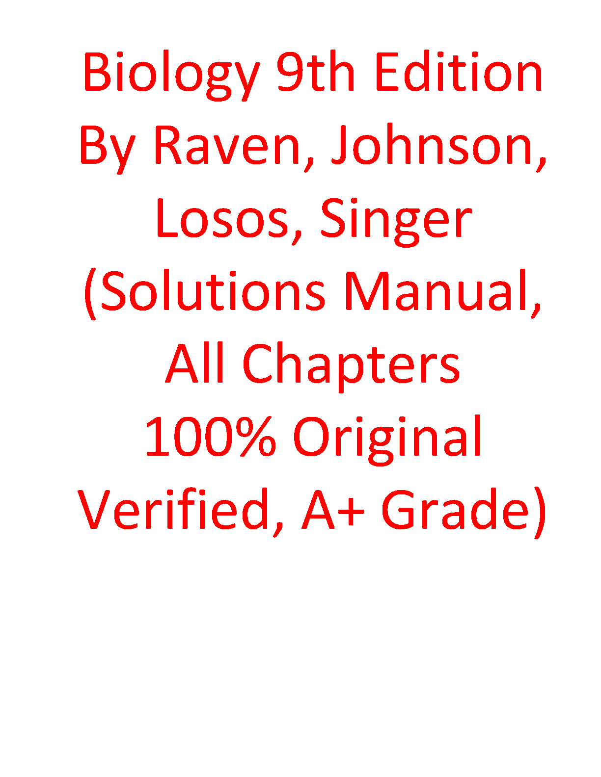 Solutions Manual for Biology, 9th Edition by Peter H. Raven, George B. Johnson, Jonathan B. Losos, and Susan R. Singer