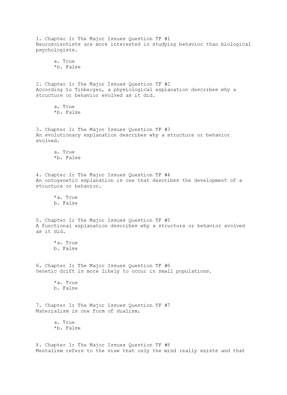 Test Bank for Biological Psychology, 10th Edition by James W. Kalat - All Chapters