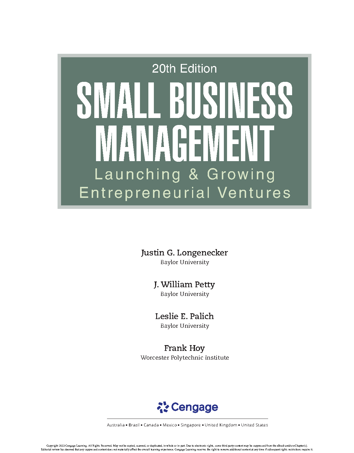 Test Bank for Small Business Management: Launching & Growing Entrepreneurial Ventures, 20th Edition by Justin G. Longenecker, J. William Petty, Leslie E. Palich, and Frank Hoy