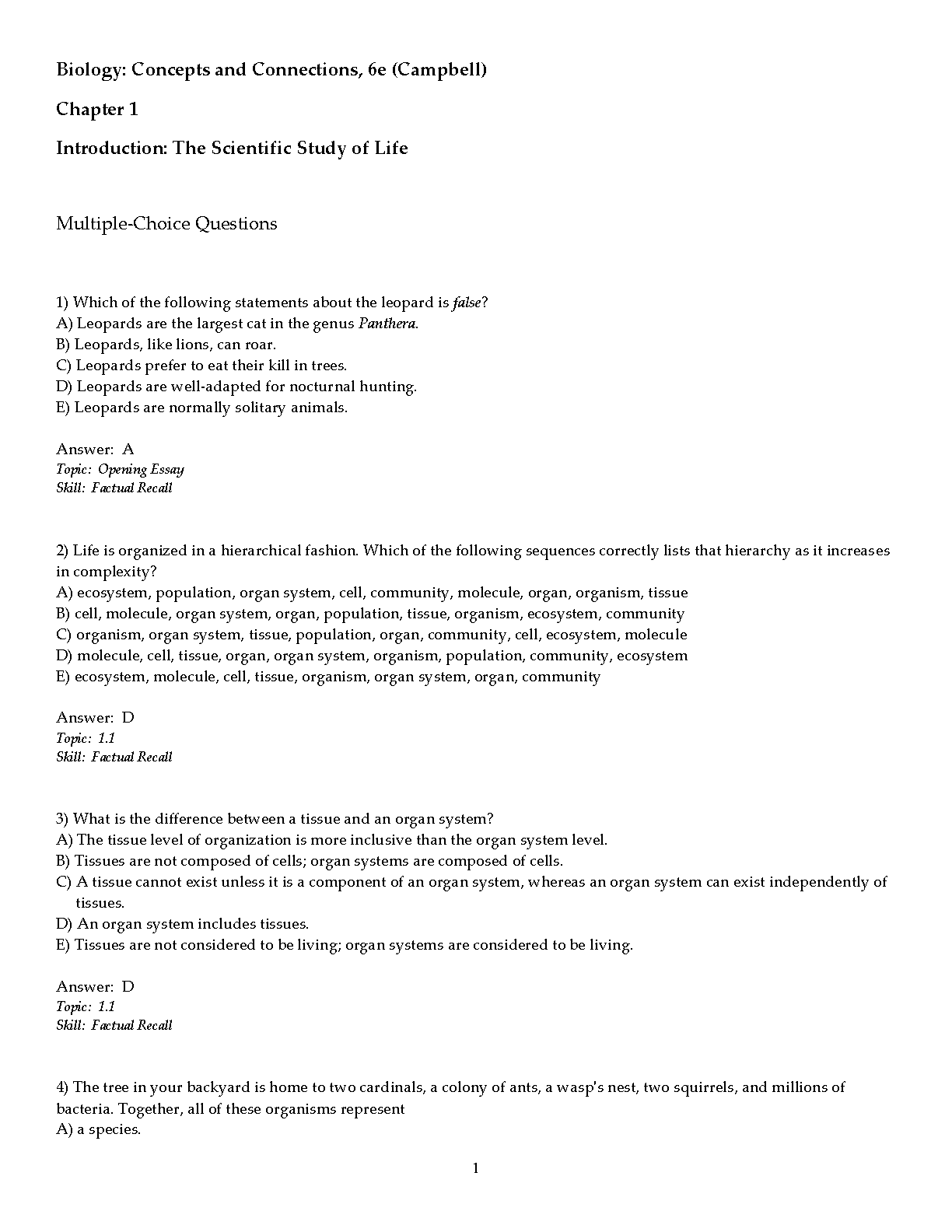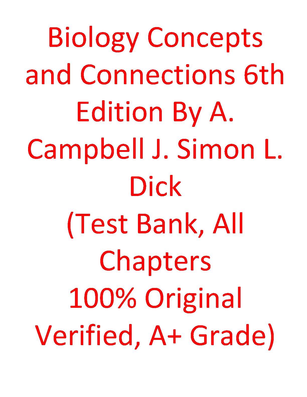 Test Bank for Biology: Concepts and Connections, 6th Edition by Neil A. Campbell, Jane B. Reece, Martha R. Taylor, Eric J. Simon, Jean L. Dickey