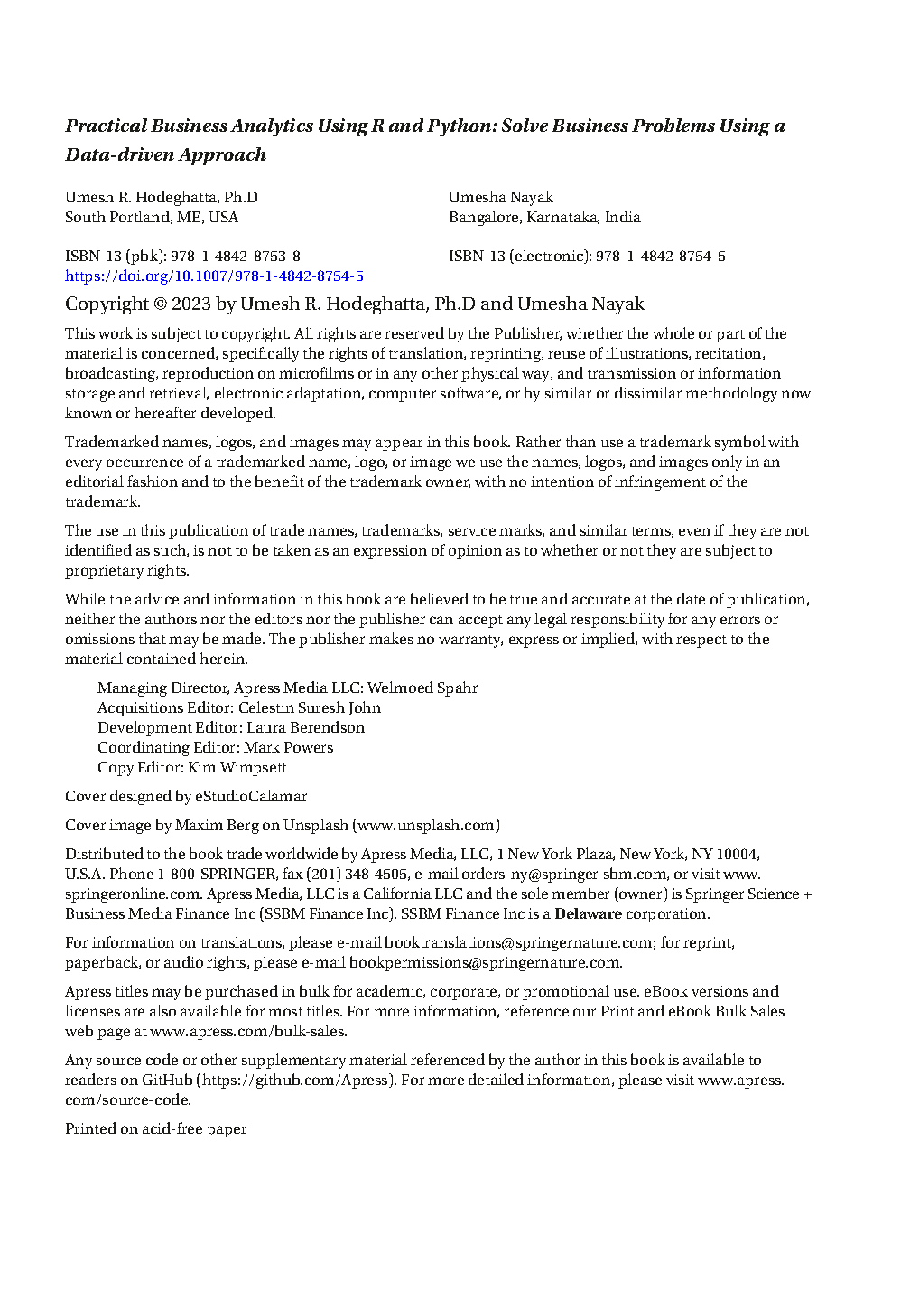 Test Bank for Practical Business Analytics Using R and Python, 2nd Edition by Umesh R. Hodeghatta & Umesha Nayak
