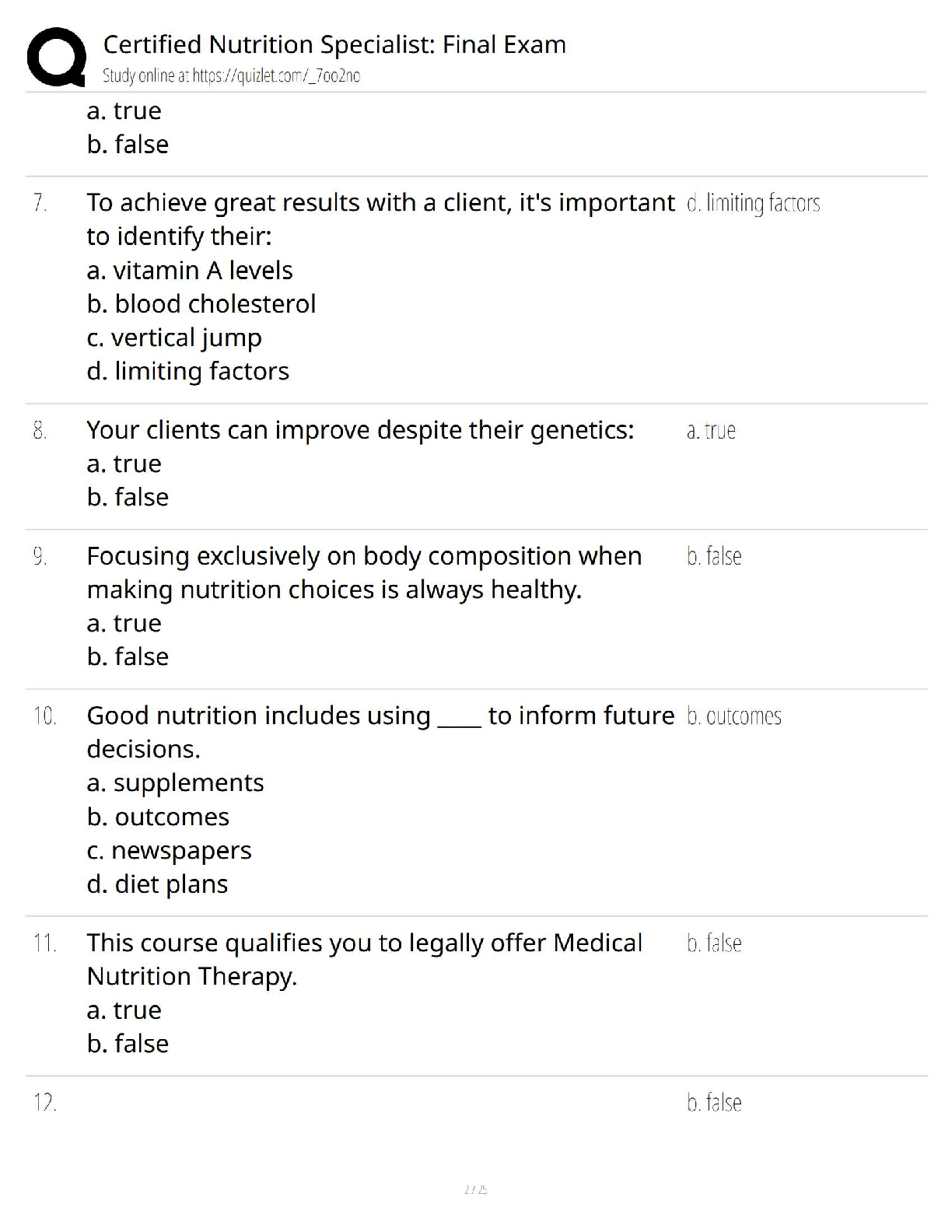 Ace your Certified Nutrition Specialist (CNS) final exam with ease using our comprehensive test bank. This guide features a complete collection of verified questions and detailed answers, covering all essential topics from nutrient density to energy balance. Designed to help you study effectively and master the material, this resource is your key to passing the CNS exam on your first try. Get instant access and start preparing for your certification today!