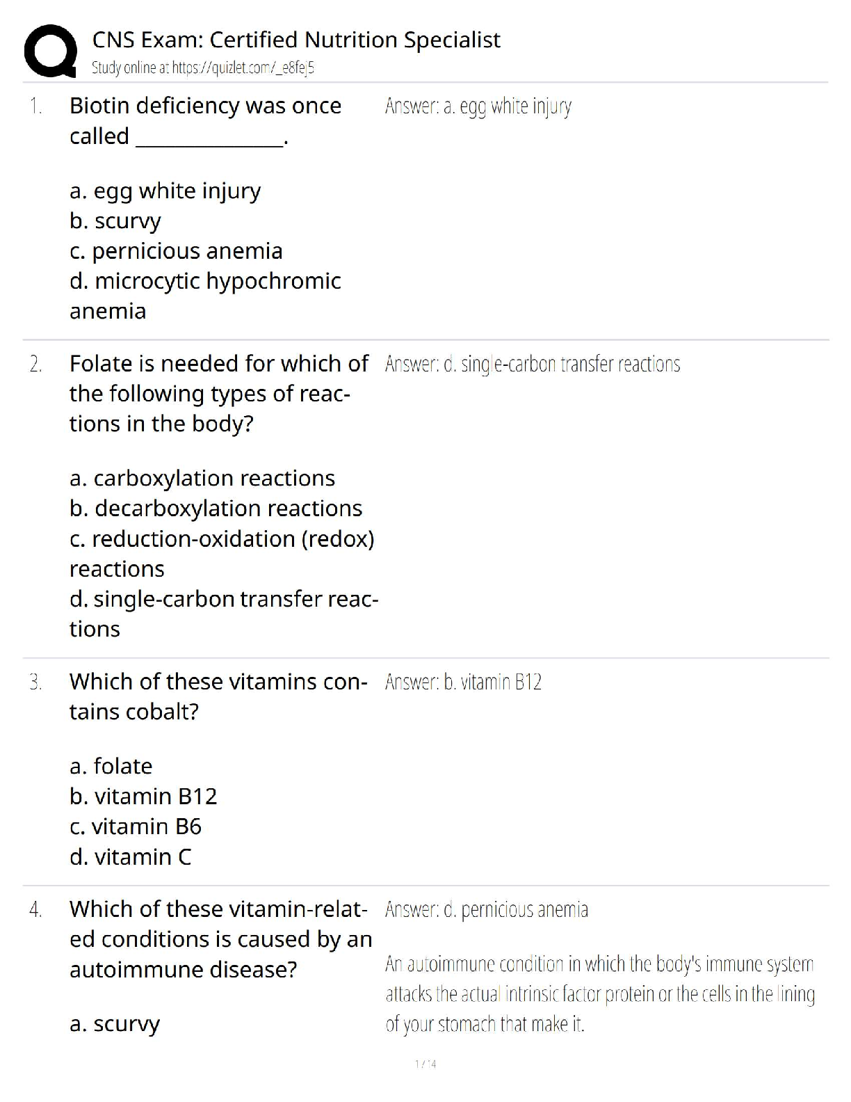 Ace your Certified Nutrition Specialist (CNS) exam with our comprehensive test bank. This essential study resource features a wide array of practice questions, each paired with a verified answer and clear explanation, covering key topics like vitamin deficiencies, metabolic reactions, and autoimmune conditions. Designed to mirror the actual exam format, this test bank is your ultimate tool for mastering the material, identifying knowledge gaps, and building the confidence you need to pass on your first attempt. Get instant access to start your successful preparation today!