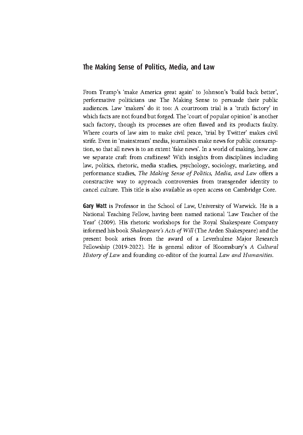 The Making Sense of Politics, Media, and Law, 1st Edition by Gary Watt | 2025/2026 Exam Success Guide