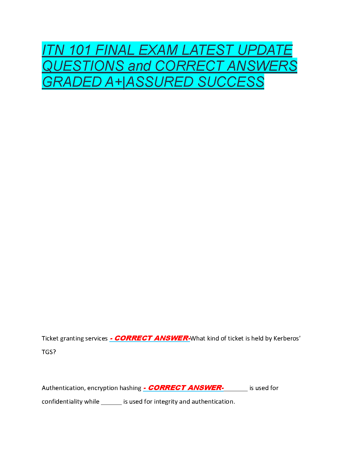 Ace your ITN 101 Final Exam with this comprehensive test bank! This resource is packed with the latest, expertly verified questions and correct answers covering all key topics in Introduction to Networking. Designed to help you study smarter, not harder, this guide provides the exact material you need to understand core concepts and pass your exam on the first try. Achieve an A+ grade and avoid resits with this essential study tool for assured success in ITN 101.