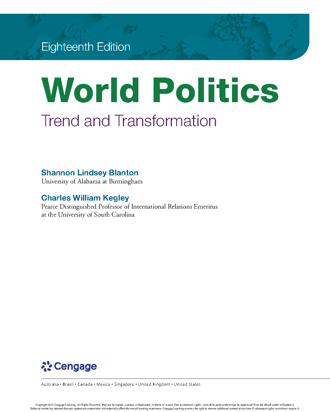 Test Bank for World Politics: Trend and Transformation, 18th Edition by Shannon L. Blanton, Charles W. Kegley, Jr.