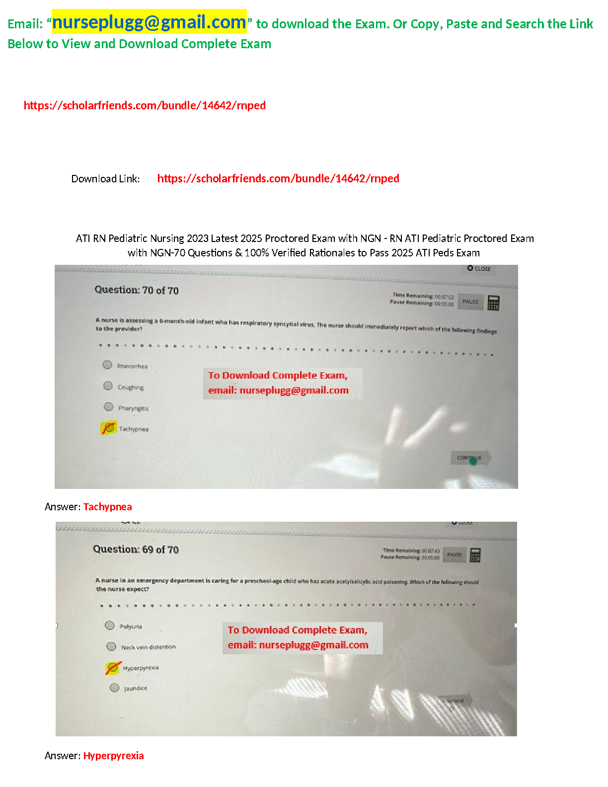 ATI RN Pediatric Nursing Proctored Exam 2025/2026 Test Bank: Master NGN with 70 Verified Questions & Rationales to Ace Your Peds Exam First Time