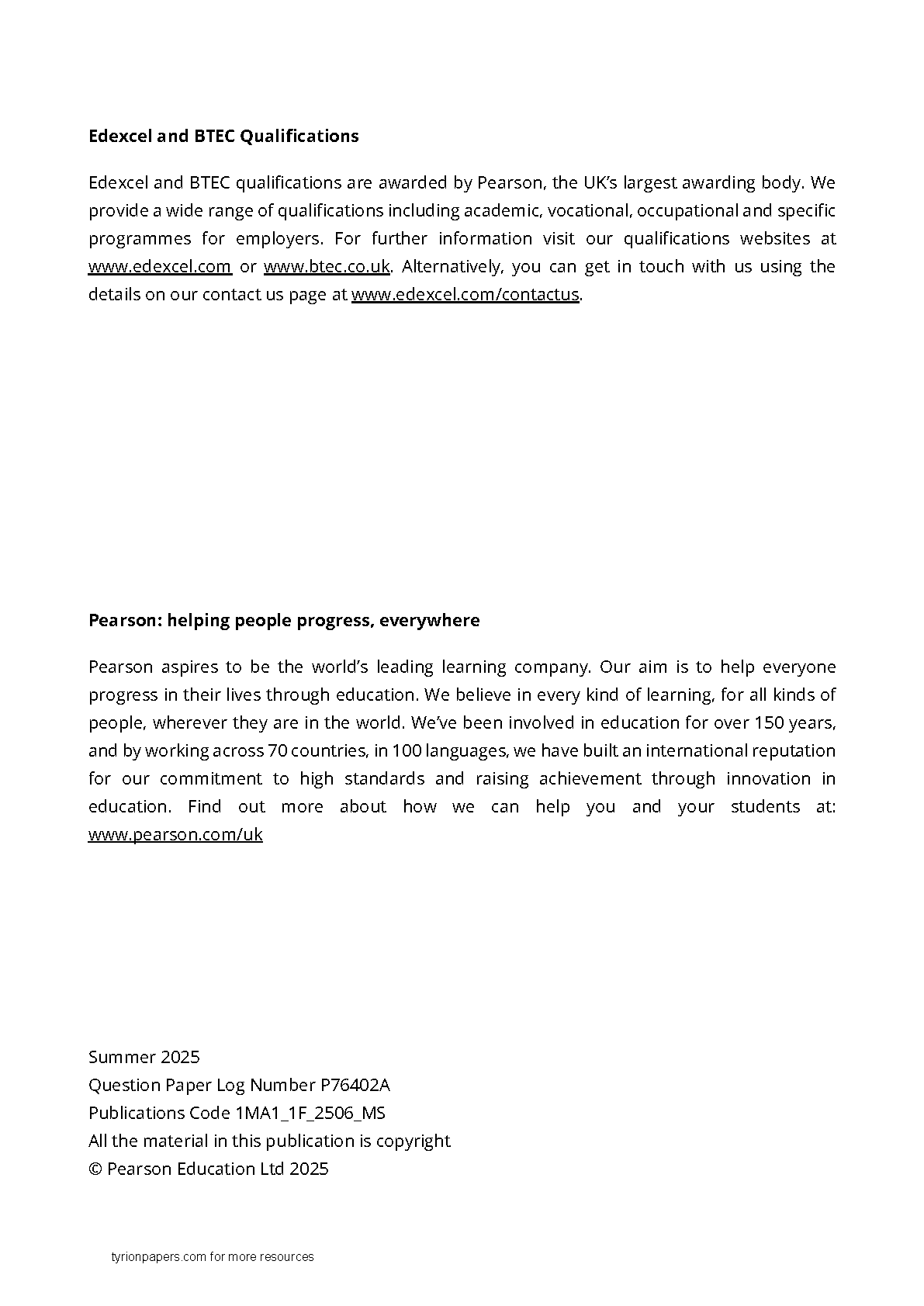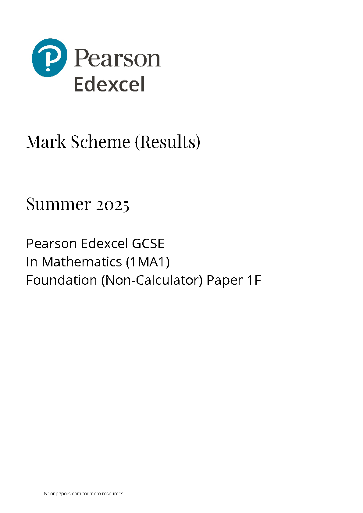 Edexcel GCSE Mathematics (1MA1) Foundation Paper 1F Mark Scheme - Summer 2025 Edition | Your Essential 2025/2026 Guide to Pass First Try