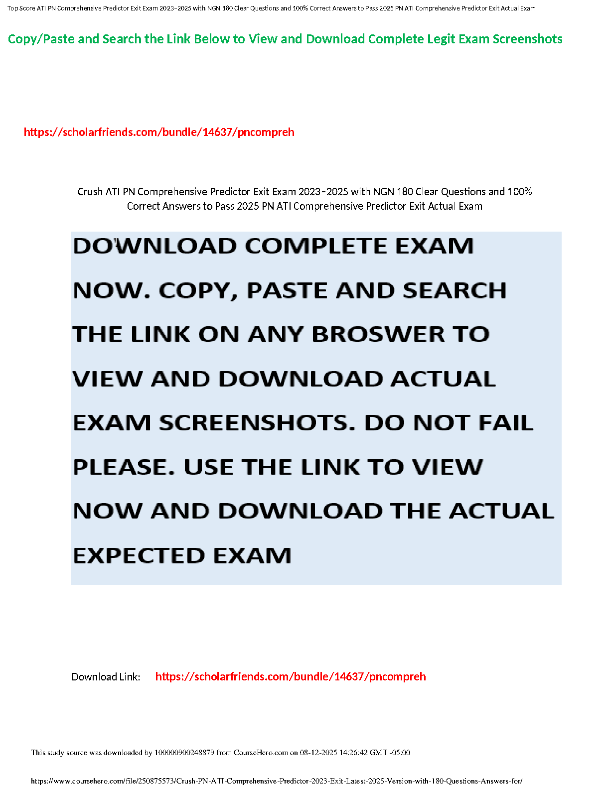 Ace your nursing school finals with our comprehensive test bank for the ATI PN Comprehensive Predictor Exit Exam, fully updated for the 2023-2025 NGN format. This essential study guide features 180 meticulously curated questions, each paired with a 100% correct and verified answer. Designed to mirror the actual exam, this resource is your key to mastering the content, boosting your confidence, and passing on your very first attempt. Don't leave your success to chance; download now and take the final step towards becoming a licensed practical nurse.