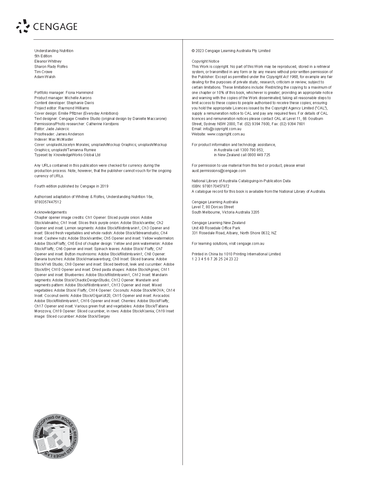 Test Bank for Understanding Nutrition, 5th Australian & New Zealand Edition by Eleanor Whitney, Sharon Rady Rolfes, Tim Crowe, Adam Walsh