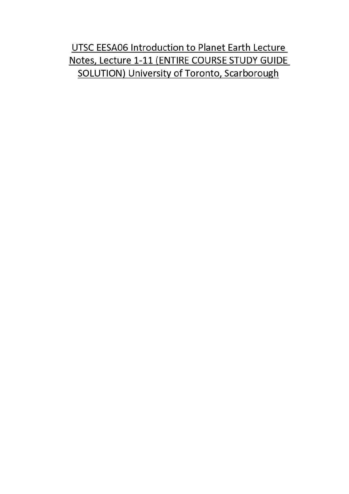 Unlock academic success in EESA06 Introduction to Planet Earth at the University of Toronto, Scarborough with our comprehensive study package. This resource is a complete collection of detailed lecture notes and solutions covering the entire course curriculum from Lecture 1 to 11. Based on the core concepts from the 14th Edition by Tarbuck, Lutgens & Tasa, this study guide is meticulously designed to help you grasp complex topics, prepare effectively for exams, and achieve top grades. Stop struggling and start mastering Earth Science today with this essential tool for passing your exams on the first try.
